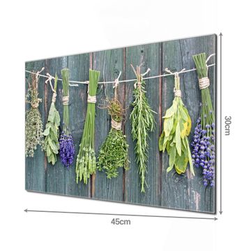 Material: 4mm Sicherheitsglas mit Metallrückwand Eigenschaften: beschreibbar, magnetisch, kratzfest Maße: 45x30x0,6cm, 2,03kg schwer Motiv Nummer 10422 Acht Kräuter Zubehör: inklusive 4 Neodym-Magnete