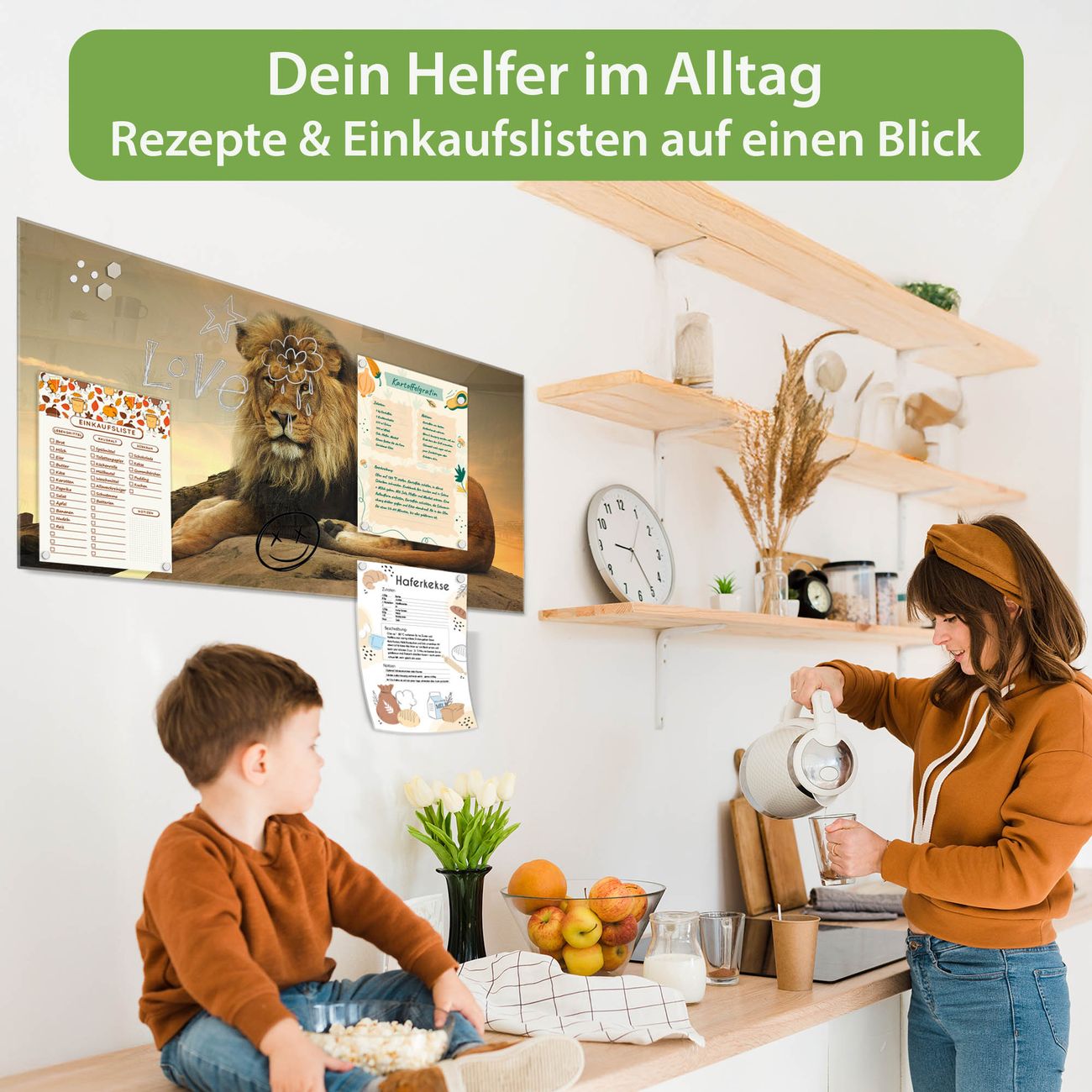 Auf der glatten Glasoberfläche lassen sich Termine, Rezepte oder Notizen ganz einfach mit Kreidestiften festhalten und rückstandslos entfernen. Starke Neodym-Magnete halten Ihre wichtigsten Erinnerungen sicher an Ort und Stelle. So entsteht Ihre ganz persönliche Ideenwand - jeden Tag neu.