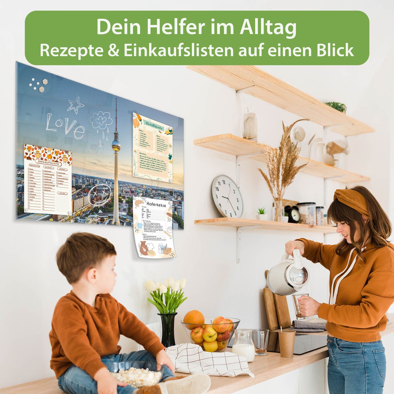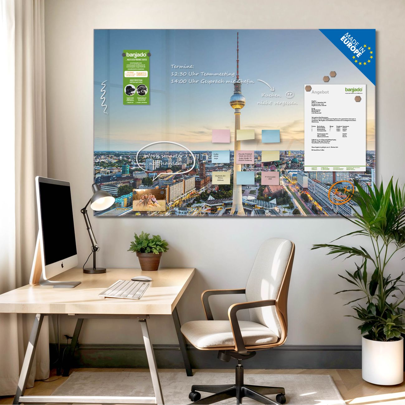 Die banjado Glas Magnettafel mit dem Motiv Motiv Alexanderplatz verbindet Funktionalität mit Stil. Sie ersetzt das Zettelchaos durch klare Strukturen und bringt dabei eine warme, natürliche Atmosphäre in Ihr Zuhause. Ob im Büro, in der Küche oder im Eingangsbereich - dieses Design-Board zieht Blicke an und sorgt für Ordnung mit Charakter.