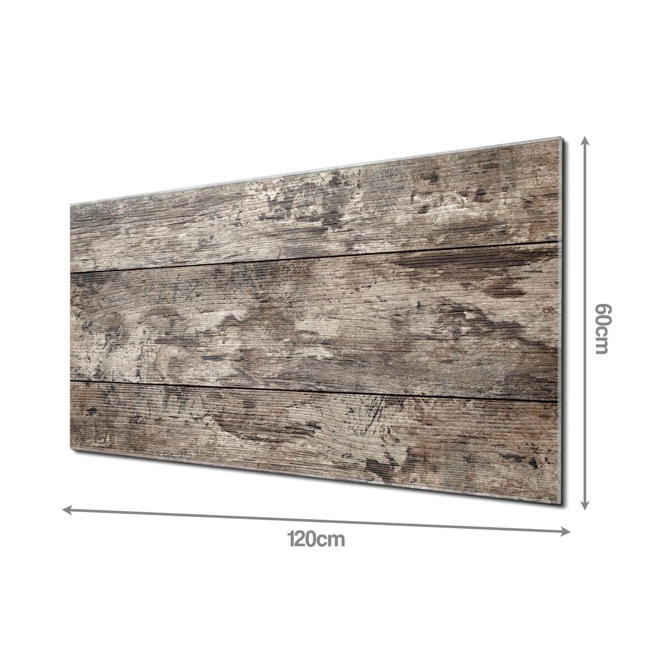 Material: 4mm Sicherheitsglas mit Metallrückwand Eigenschaften: beschreibbar, magnetisch, kratzfest Maße: 120x60x0,6cm, 10,80kg schwer Motiv Nummer 11491 Alte Planken Zubehör: inklusive 4 Neodym-Magnete
