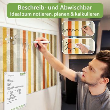 Die banjado Glas Magnettafel mit dem Motiv Motiv Alte Streifen verbindet Funktionalität mit Stil. Sie ersetzt das Zettelchaos durch klare Strukturen und bringt dabei eine warme, natürliche Atmosphäre in Ihr Zuhause. Ob im Büro, in der Küche oder im Eingangsbereich - dieses Design-Board zieht Blicke an und sorgt für Ordnung mit Charakter.
