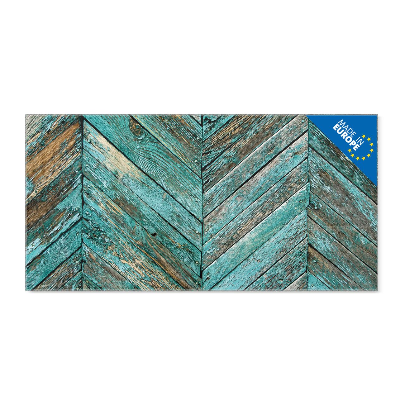 Material: 4mm Sicherheitsglas mit Metallrückwand Eigenschaften: beschreibbar, magnetisch, kratzfest Maße: 100x50x0,6cm, 7,50kg schwer Motiv Nummer 11355 Altes Holz Blau Zubehör: inklusive 4 Neodym-Magnete