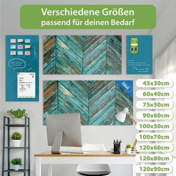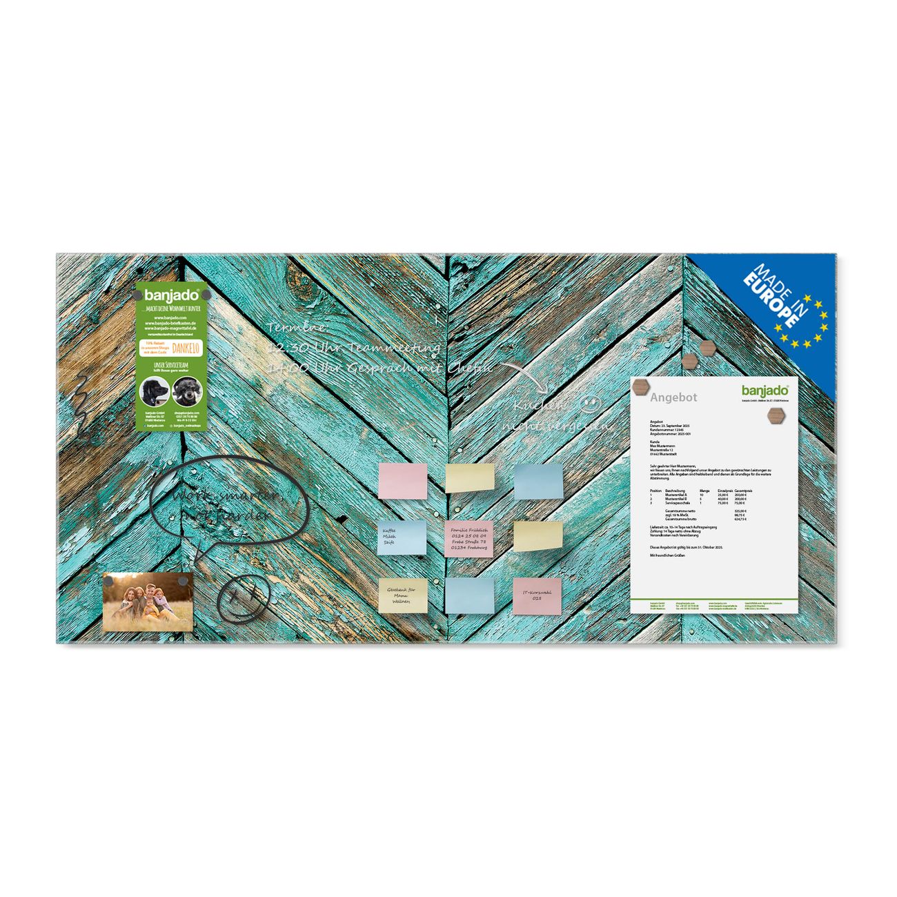 Glas Magnettafel im Querformat Motiv Altes Holz Blau