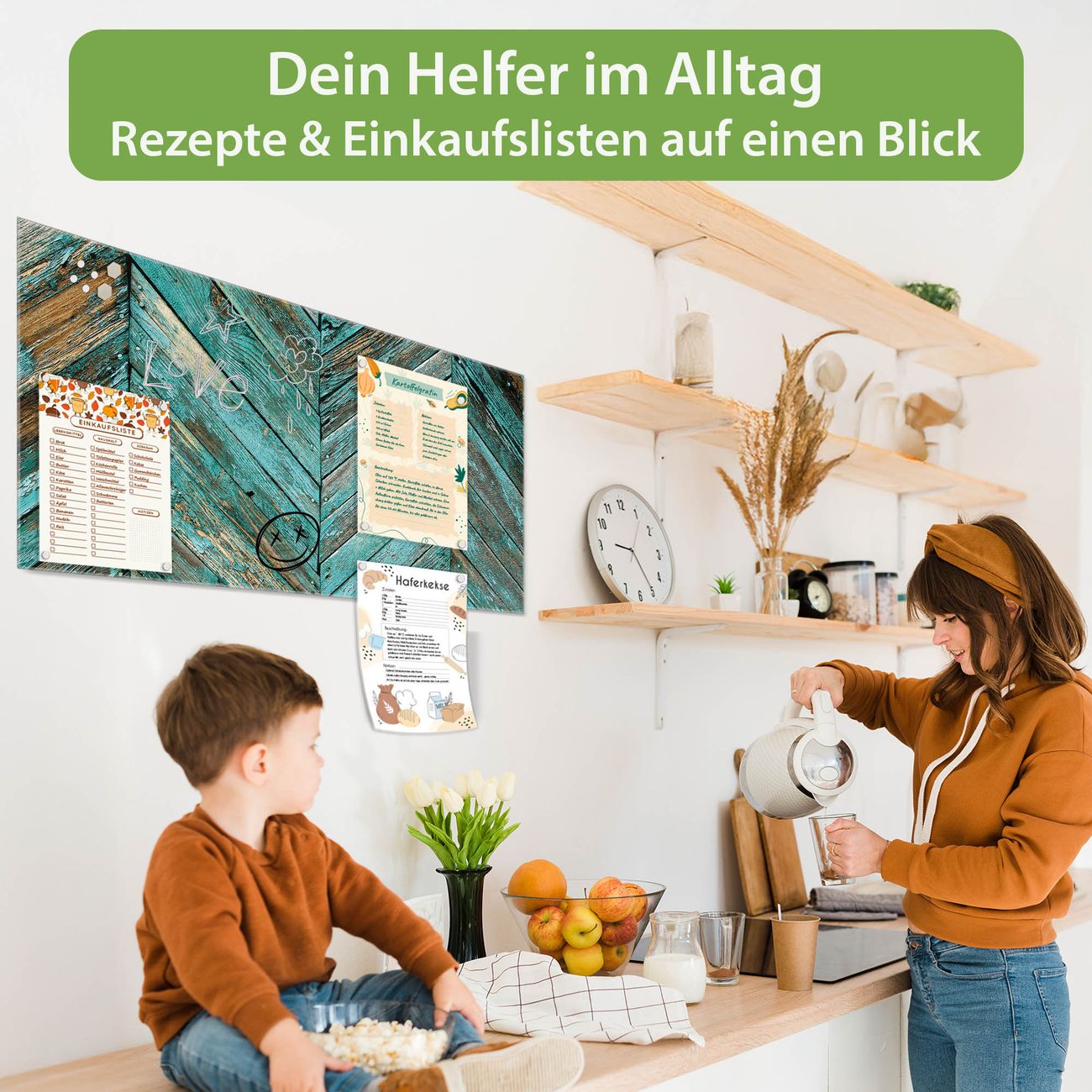 Ein Stück Design, das Ihren Alltag organisiert. Schreiben, heften, inspirieren - alles an einem Ort. Qualität, die man spürt. Montage leicht gemacht. Handwerk mit Herz - veredelt in Sachsen. Einzigartiges Design mit Motiv Motiv Altes Holz Blau Beschreibbare Glasoberfläche, leicht zu reinigen Starke Magnetkraft durch Stahlrückwand Inklusive 4 Neodym-Magneten Flexible Montageoptionen Handveredelt in Sachsen - Qualität, die bleibt