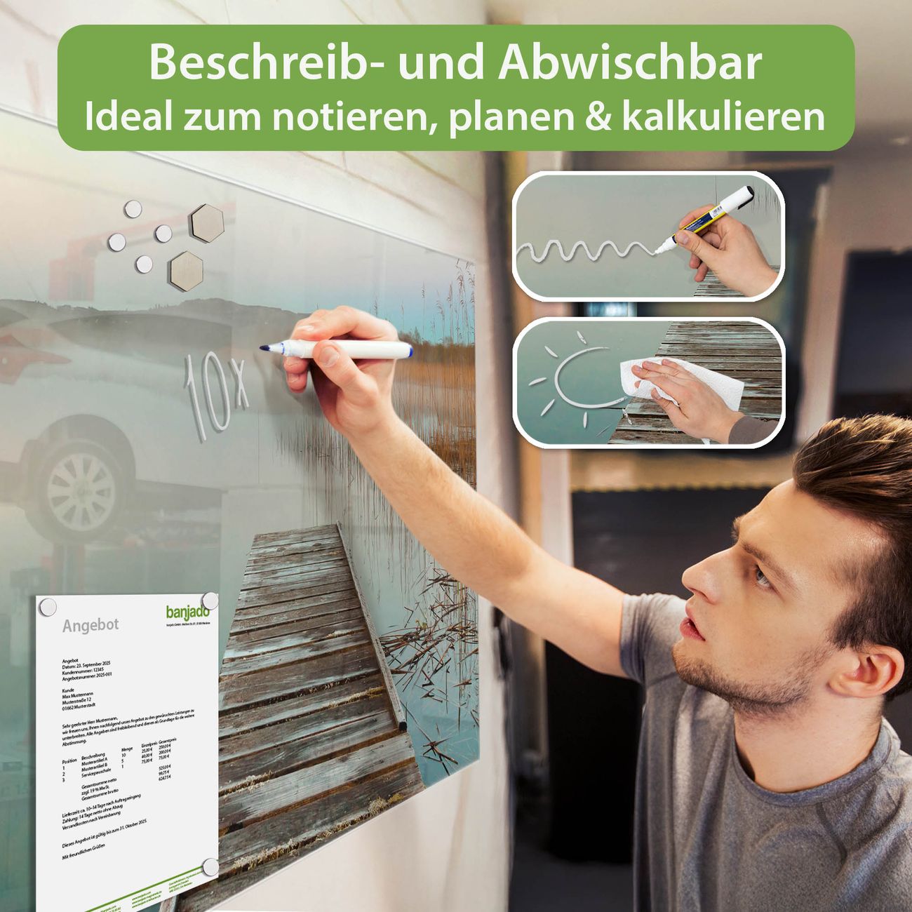 Jede Glas Magnettafel wird in unserer Werkstatt von Hand gefertigt und sorgfältig geprüft. So erhalten Sie ein echtes Qualitätsprodukt, das Funktion und Ästhetik perfekt vereint.?? Warum banjado?