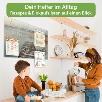 Auf der glatten Glasoberfläche lassen sich Termine, Rezepte oder Notizen ganz einfach mit Kreidestiften festhalten und rückstandslos entfernen. Starke Neodym-Magnete halten Ihre wichtigsten Erinnerungen sicher an Ort und Stelle. So entsteht Ihre ganz persönliche Ideenwand - jeden Tag neu.