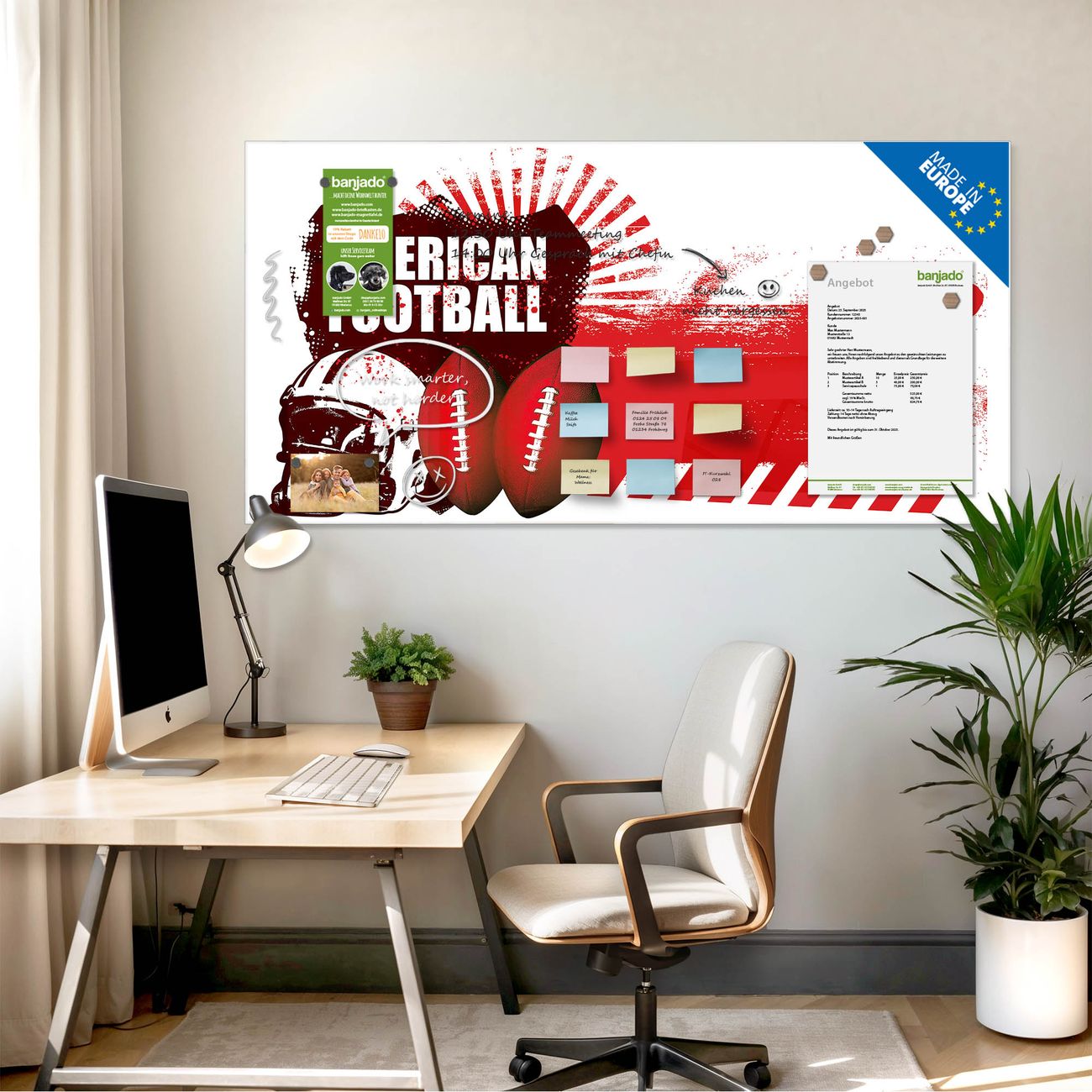 Die banjado Glas Magnettafel mit dem Motiv Motiv American Football verbindet Funktionalität mit Stil. Sie ersetzt das Zettelchaos durch klare Strukturen und bringt dabei eine warme, natürliche Atmosphäre in Ihr Zuhause. Ob im Büro, in der Küche oder im Eingangsbereich - dieses Design-Board zieht Blicke an und sorgt für Ordnung mit Charakter.