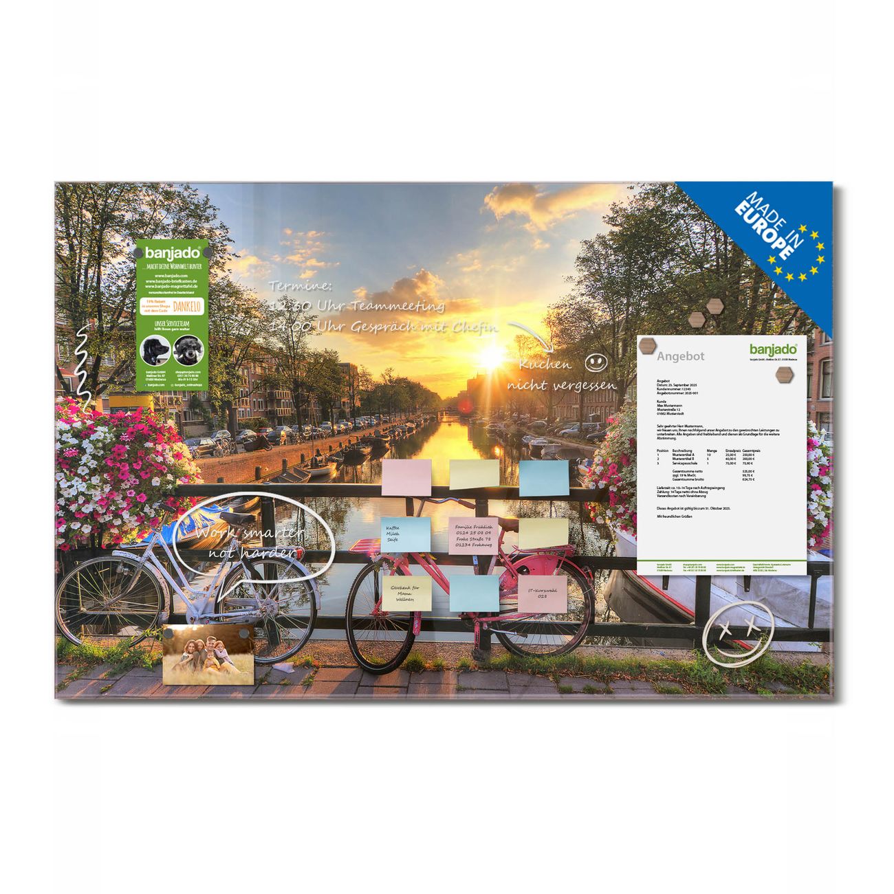 Glas Magnettafel im Querformat Motiv Amsterdam Mit Rad