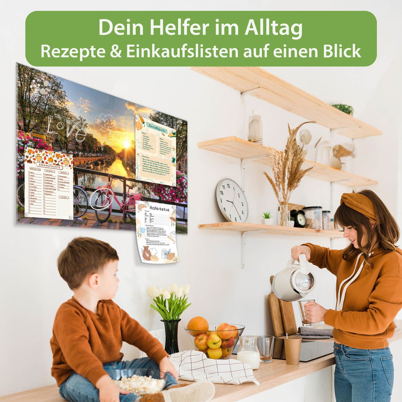 Ein Stück Design, das Ihren Alltag organisiert. Schreiben, heften, inspirieren - alles an einem Ort. Qualität, die man spürt. Montage leicht gemacht. Handwerk mit Herz - veredelt in Sachsen. Einzigartiges Design mit Motiv Motiv Amsterdam Mit Rad Beschreibbare Glasoberfläche, leicht zu reinigen Starke Magnetkraft durch Stahlrückwand Inklusive 4 Neodym-Magneten Flexible Montageoptionen Handveredelt in Sachsen - Qualität, die bleibt