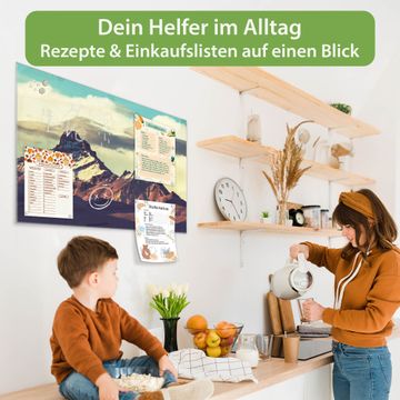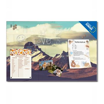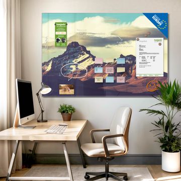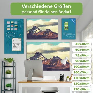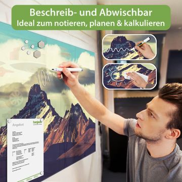 Material: 4mm Sicherheitsglas mit Metallrückwand Eigenschaften: beschreibbar, magnetisch, kratzfest Maße: 75x50x0,6cm, 5,63kg schwer Motiv Nummer 11875 Anden Zubehör: inklusive 4 Neodym-Magnete