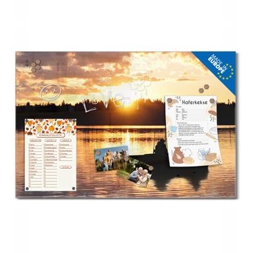 Material: 4mm Sicherheitsglas mit Metallrückwand Eigenschaften: beschreibbar, magnetisch, kratzfest Maße: 75x50x0,6cm, 5,63kg schwer Motiv Nummer 10554 Angler Zubehör: inklusive 4 Neodym-Magnete