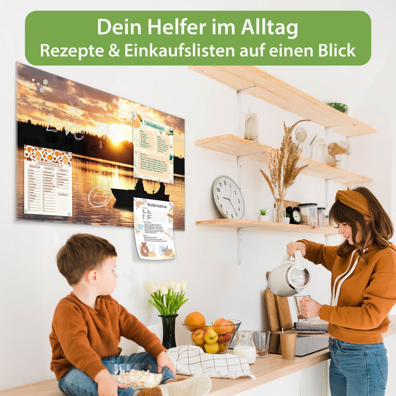 Auf der glatten Glasoberfläche lassen sich Termine, Rezepte oder Notizen ganz einfach mit Kreidestiften festhalten und rückstandslos entfernen. Starke Neodym-Magnete halten Ihre wichtigsten Erinnerungen sicher an Ort und Stelle. So entsteht Ihre ganz persönliche Ideenwand - jeden Tag neu.