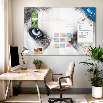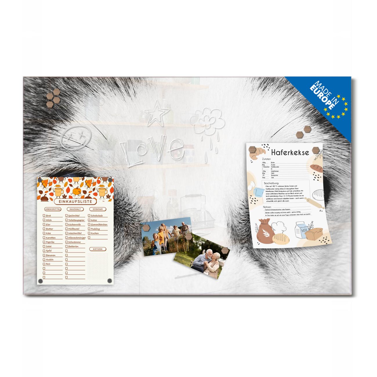 Material: 4mm Sicherheitsglas mit Metallrückwand Eigenschaften: beschreibbar, magnetisch, kratzfest Maße: 75x50x0,6cm, 5,63kg schwer Motiv Nummer 12373 Anouk Zubehör: inklusive 4 Neodym-Magnete