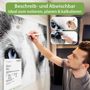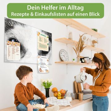 Auf der glatten Glasoberfläche lassen sich Termine, Rezepte oder Notizen ganz einfach mit Kreidestiften festhalten und rückstandslos entfernen. Starke Neodym-Magnete halten Ihre wichtigsten Erinnerungen sicher an Ort und Stelle. So entsteht Ihre ganz persönliche Ideenwand - jeden Tag neu.