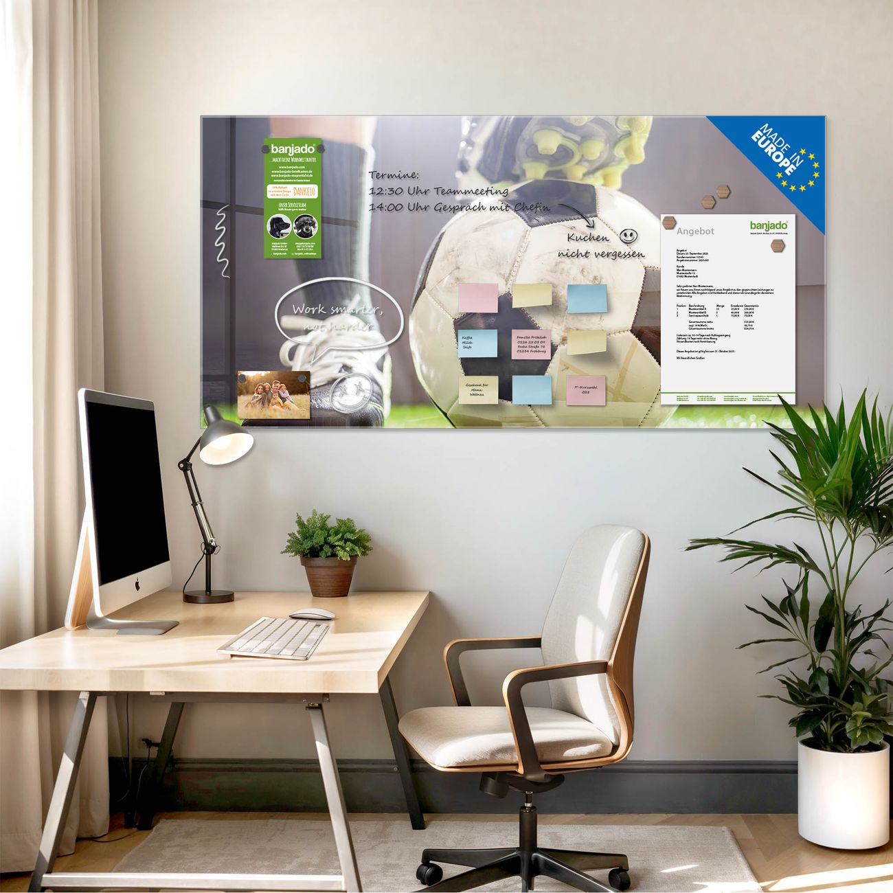 Die banjado Glas Magnettafel mit dem Motiv Motiv Anpfiff verbindet Funktionalität mit Stil. Sie ersetzt das Zettelchaos durch klare Strukturen und bringt dabei eine warme, natürliche Atmosphäre in Ihr Zuhause. Ob im Büro, in der Küche oder im Eingangsbereich - dieses Design-Board zieht Blicke an und sorgt für Ordnung mit Charakter.