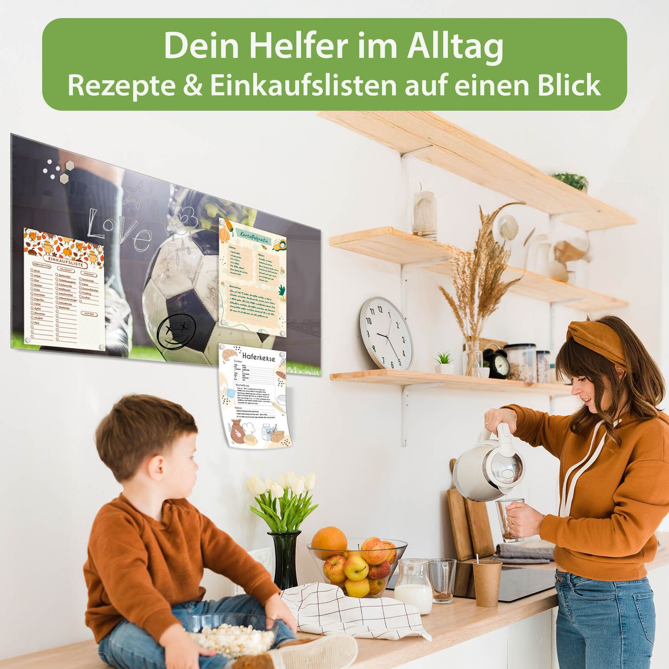 Ein Stück Design, das Ihren Alltag organisiert. Schreiben, heften, inspirieren - alles an einem Ort. Qualität, die man spürt. Montage leicht gemacht. Handwerk mit Herz - veredelt in Sachsen. Einzigartiges Design mit Motiv Motiv Anpfiff Beschreibbare Glasoberfläche, leicht zu reinigen Starke Magnetkraft durch Stahlrückwand Inklusive 4 Neodym-Magneten Flexible Montageoptionen Handveredelt in Sachsen - Qualität, die bleibt