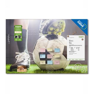 Material: 4mm Sicherheitsglas mit Metallrückwand Eigenschaften: beschreibbar, magnetisch, kratzfest Maße: 120x80x0,6cm, 14,40kg schwer Motiv Nummer 10810 Anpfiff Zubehör: inklusive 4 Neodym-Magnete