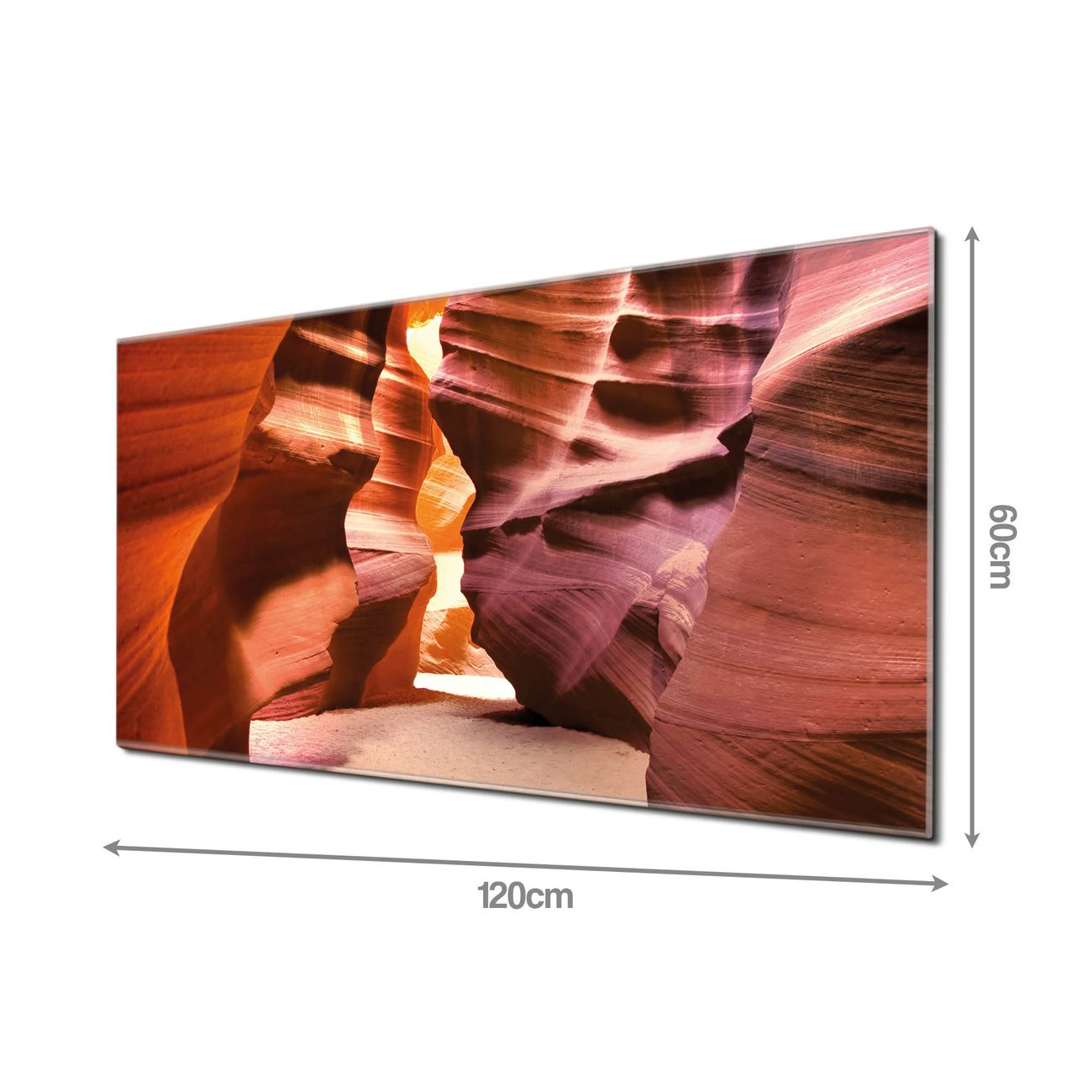 Material: 4mm Sicherheitsglas mit Metallrückwand Eigenschaften: beschreibbar, magnetisch, kratzfest Maße: 120x60x0,6cm, 10,80kg schwer Motiv Nummer 10156 Antelope Canyon Zubehör: inklusive 4 Neodym-Magnete