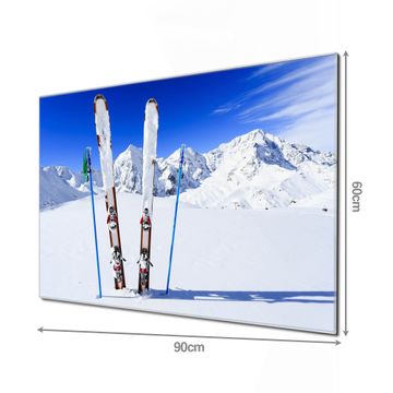 Material: 4mm Sicherheitsglas mit Metallrückwand Eigenschaften: beschreibbar, magnetisch, kratzfest Maße: 90x60x0,6cm, 8,10kg schwer Motiv Nummer 11150 Apres Ski Zubehör: inklusive 4 Neodym-Magnete