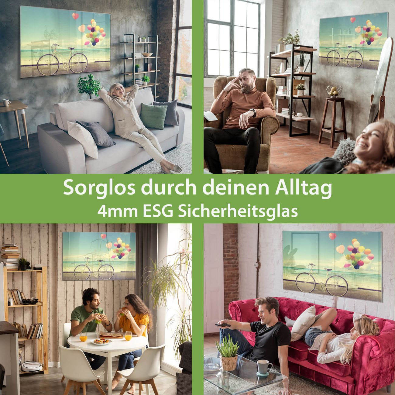 Material: 4mm Sicherheitsglas mit Metallrückwand Eigenschaften: beschreibbar, magnetisch, kratzfest Maße: 45x30x0,6cm, 2,03kg schwer Motiv Nummer 10802 Auf Und Davon Zubehör: inklusive 4 Neodym-Magnete