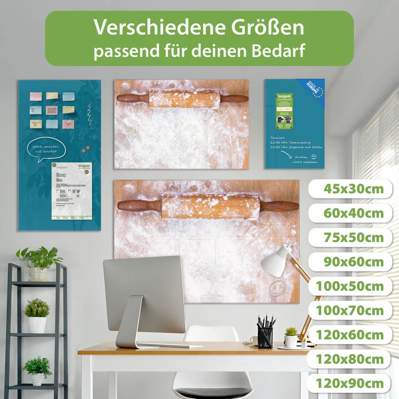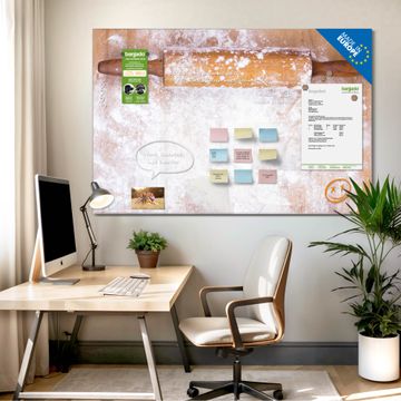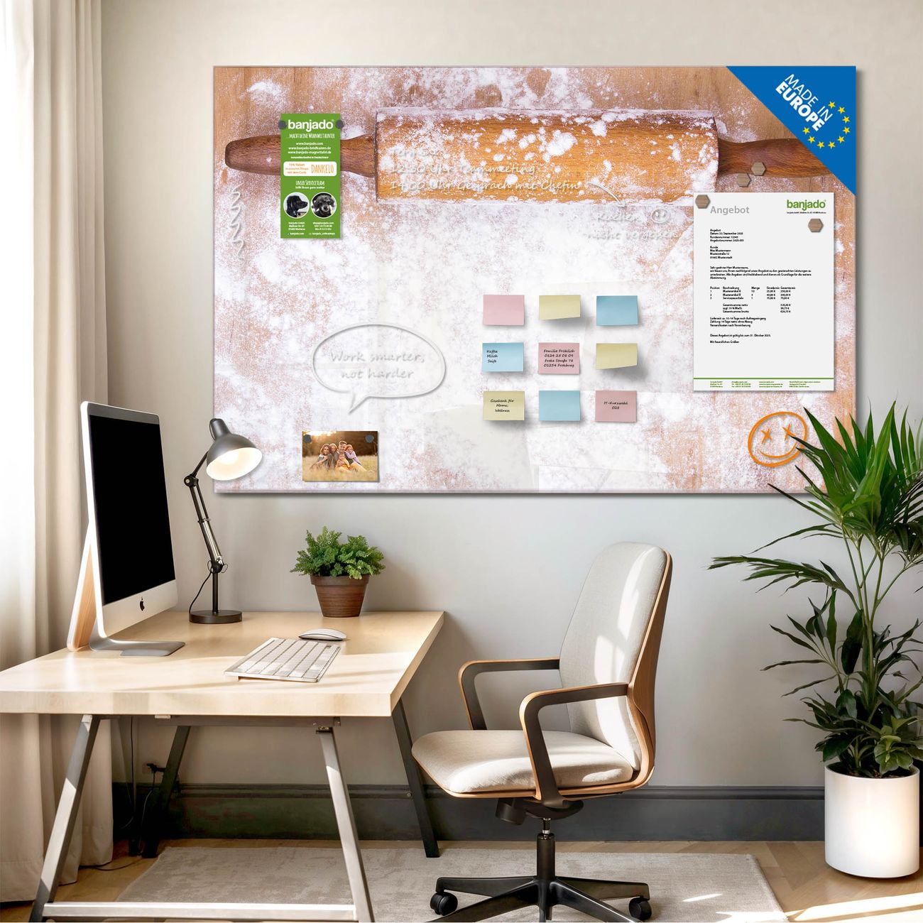 Die banjado Glas Magnettafel mit dem Motiv Motiv Backen verbindet Funktionalität mit Stil. Sie ersetzt das Zettelchaos durch klare Strukturen und bringt dabei eine warme, natürliche Atmosphäre in Ihr Zuhause. Ob im Büro, in der Küche oder im Eingangsbereich - dieses Design-Board zieht Blicke an und sorgt für Ordnung mit Charakter.