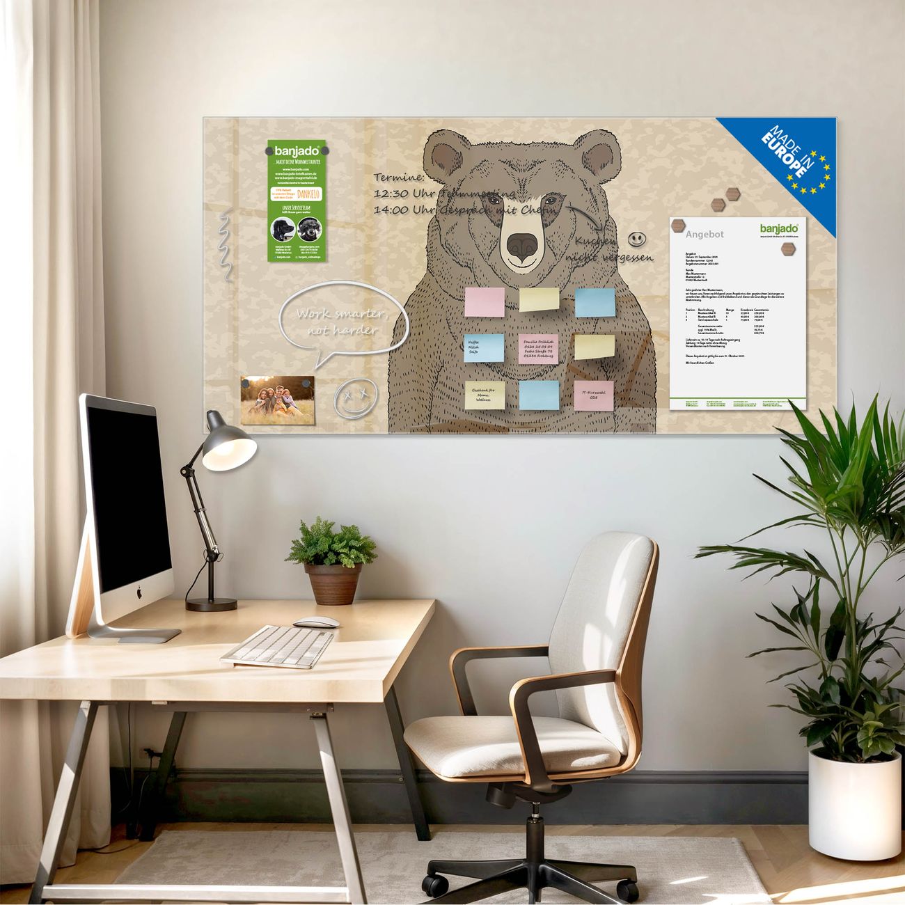 Glas Magnettafel im Querformat Motiv Bär Ohne Brille