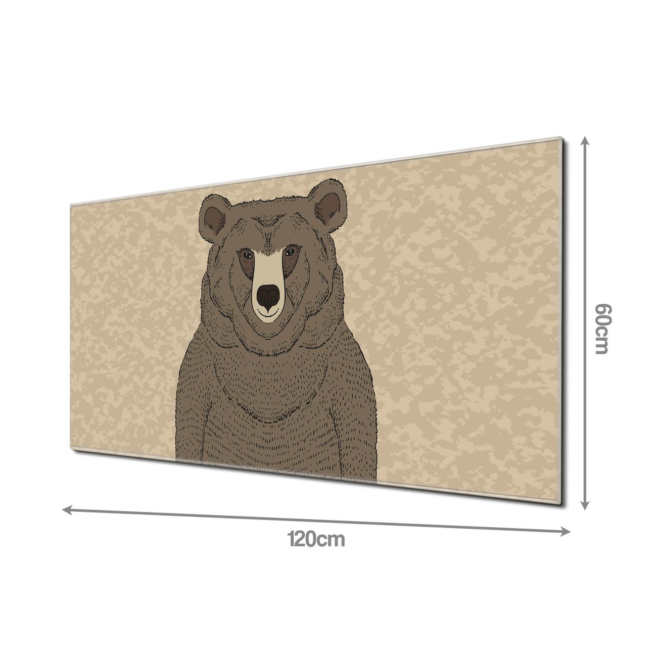 Material: 4mm Sicherheitsglas mit Metallrückwand Eigenschaften: beschreibbar, magnetisch, kratzfest Maße: 120x60x0,6cm, 10,80kg schwer Motiv Nummer 12102 Bär Ohne Brille Zubehör: inklusive 4 Neodym-Magnete