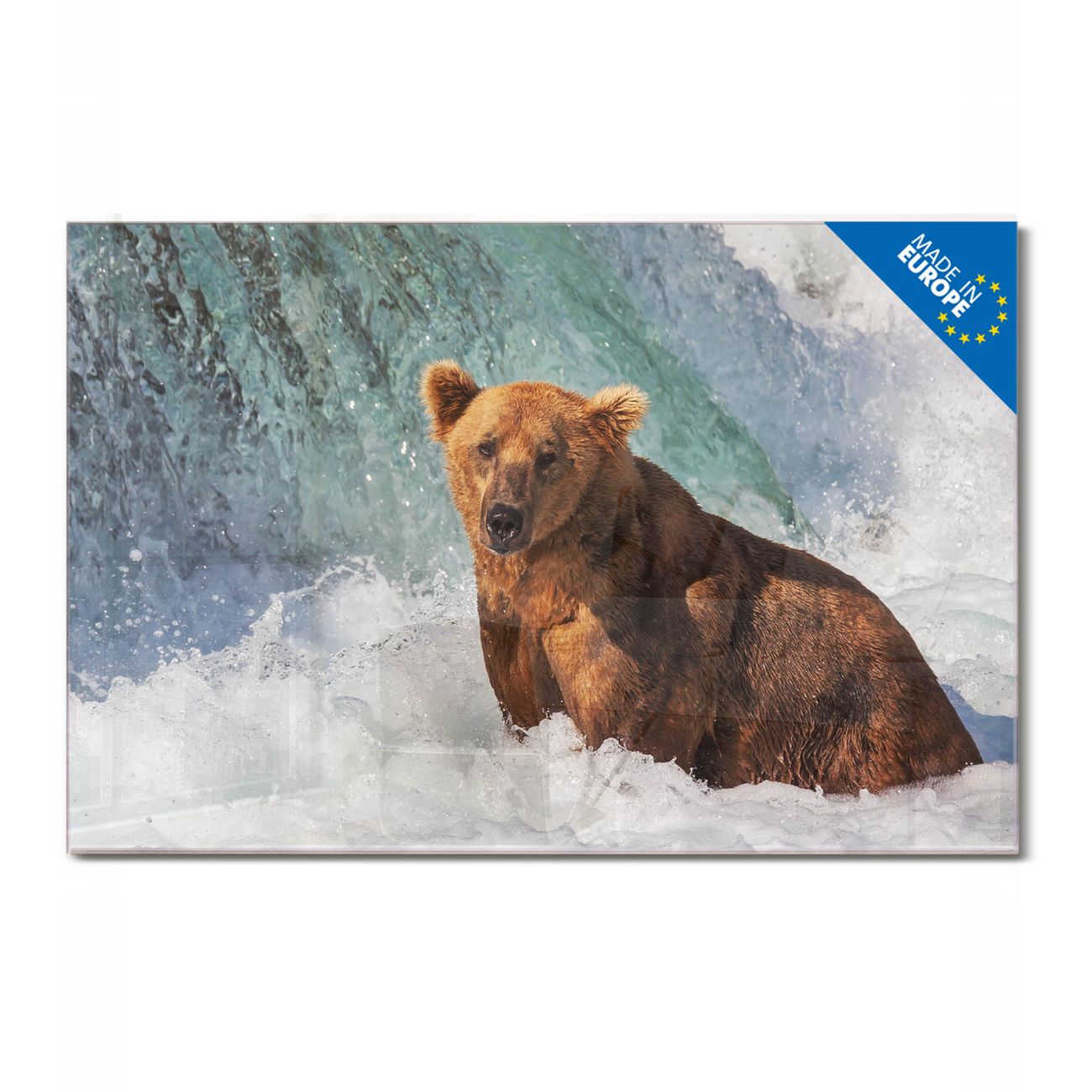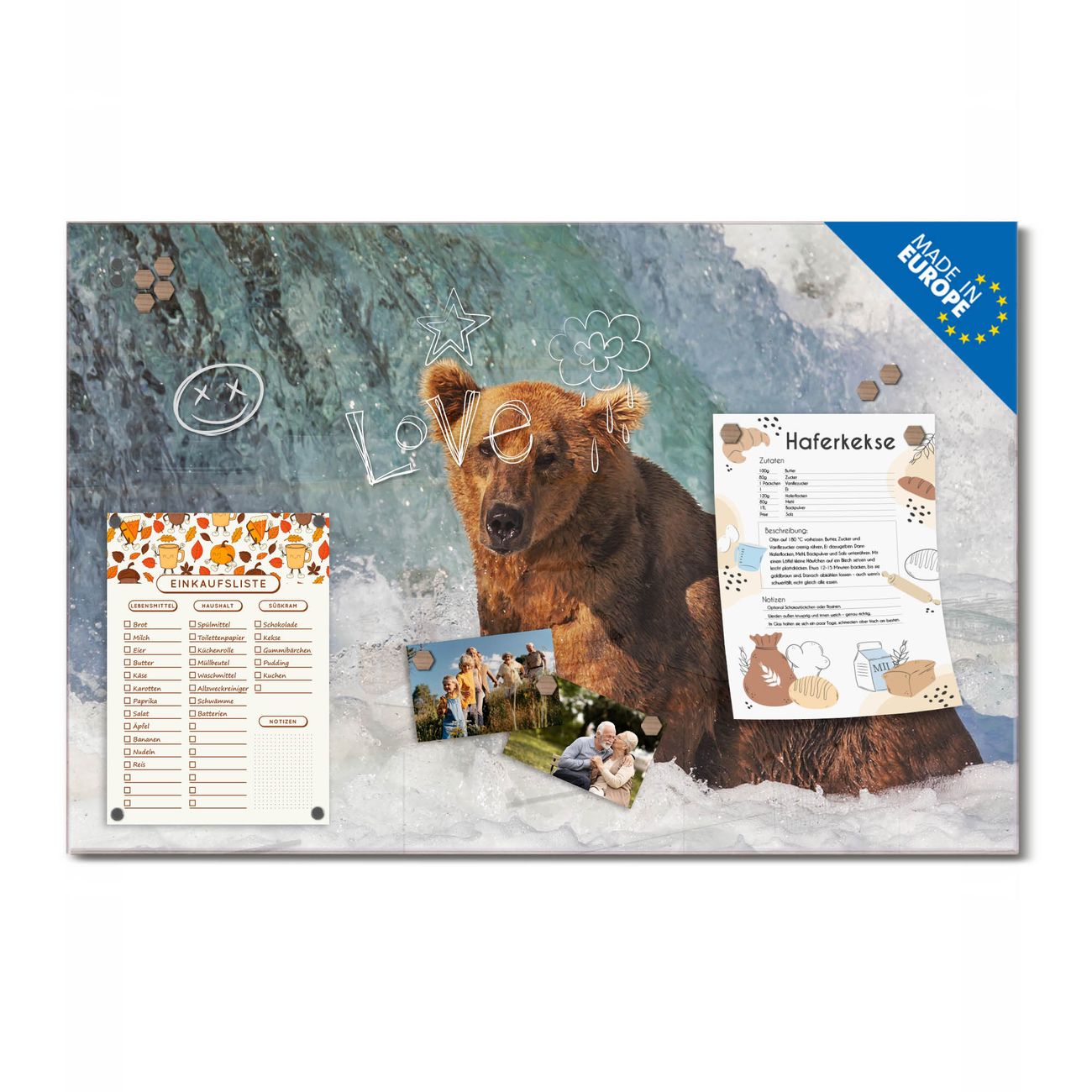 Glas Magnettafel im Querformat Motiv Bär Im Wasser