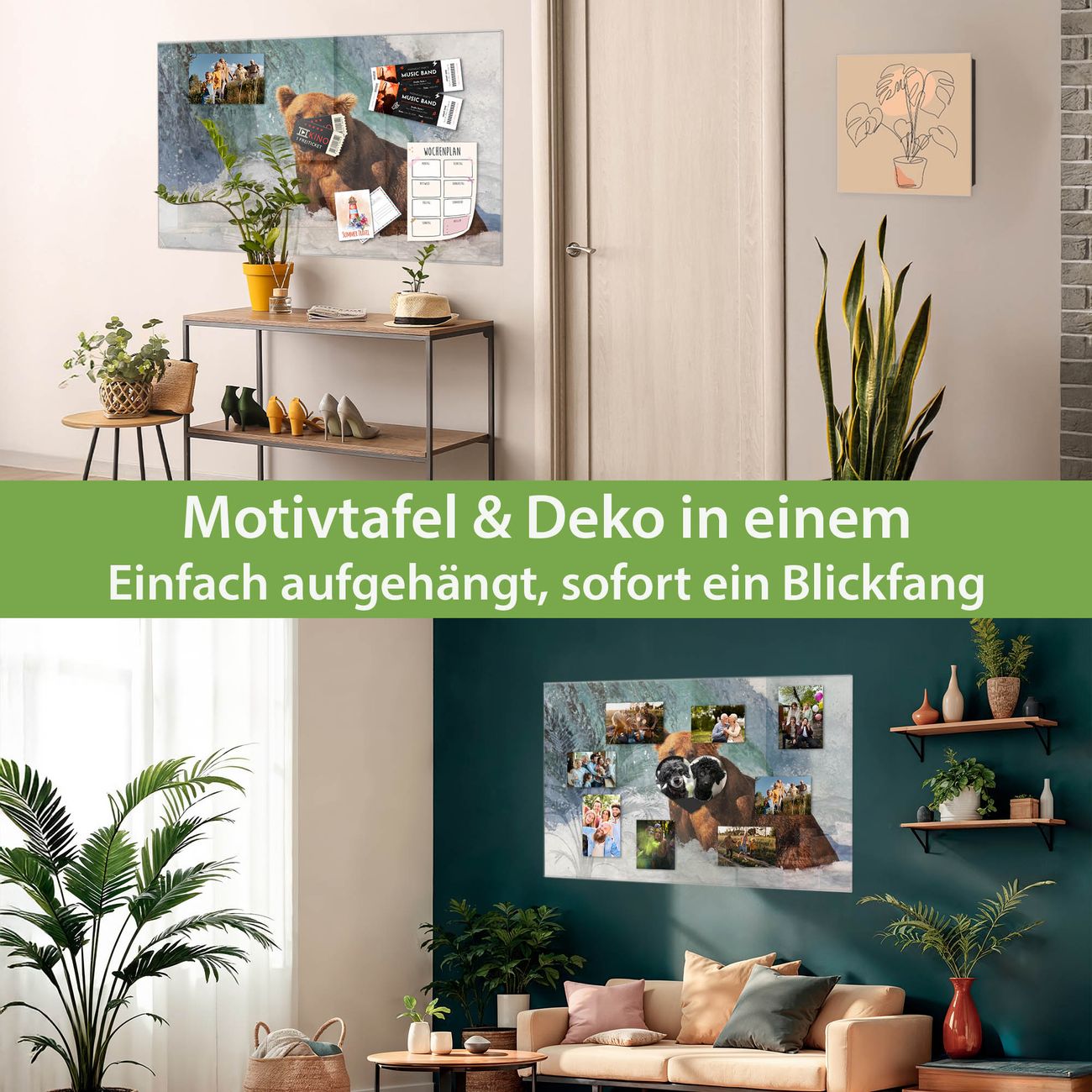 Die banjado Glas Magnettafel mit dem Motiv Motiv Bär Im Wasser verbindet Funktionalität mit Stil. Sie ersetzt das Zettelchaos durch klare Strukturen und bringt dabei eine warme, natürliche Atmosphäre in Ihr Zuhause. Ob im Büro, in der Küche oder im Eingangsbereich - dieses Design-Board zieht Blicke an und sorgt für Ordnung mit Charakter.