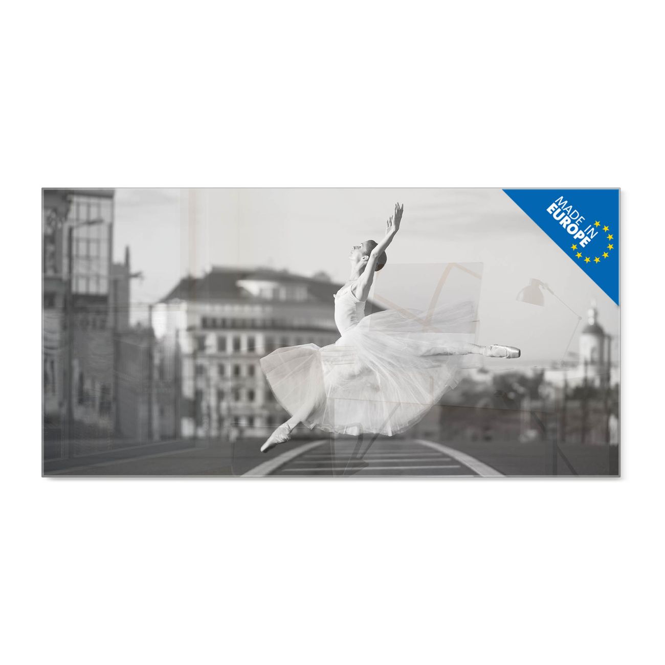 Material: 4mm Sicherheitsglas mit Metallrückwand Eigenschaften: beschreibbar, magnetisch, kratzfest Maße: 100x50x0,6cm, 7,50kg schwer Motiv Nummer 12809 Ballerina In Moskau Zubehör: inklusive 4 Neodym-Magnete