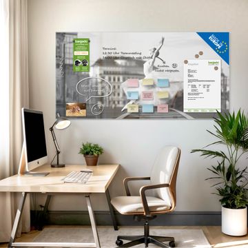 Gefertigt aus gehärtetem Sicherheitsglas mit einer magnetischen Rückwand aus Stahl überzeugt diese Magnettafel durch Stabilität und Langlebigkeit. Die Oberfläche bleibt dauerhaft brillant und pflegeleicht, selbst bei täglicher Nutzung.