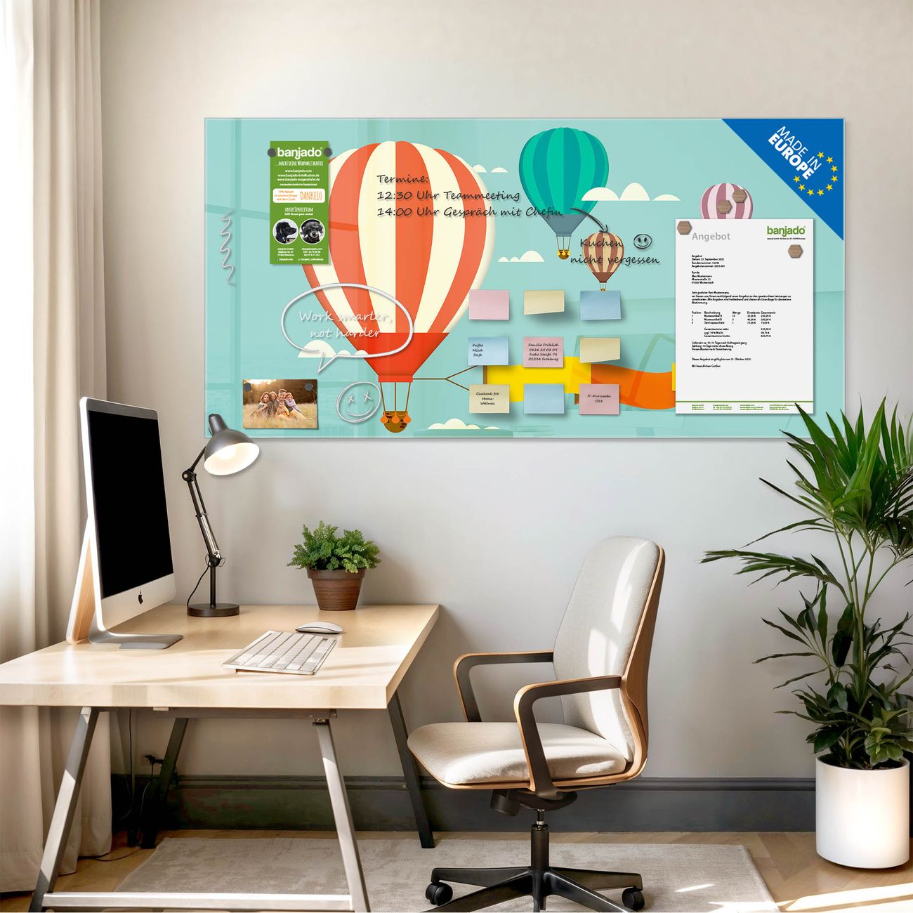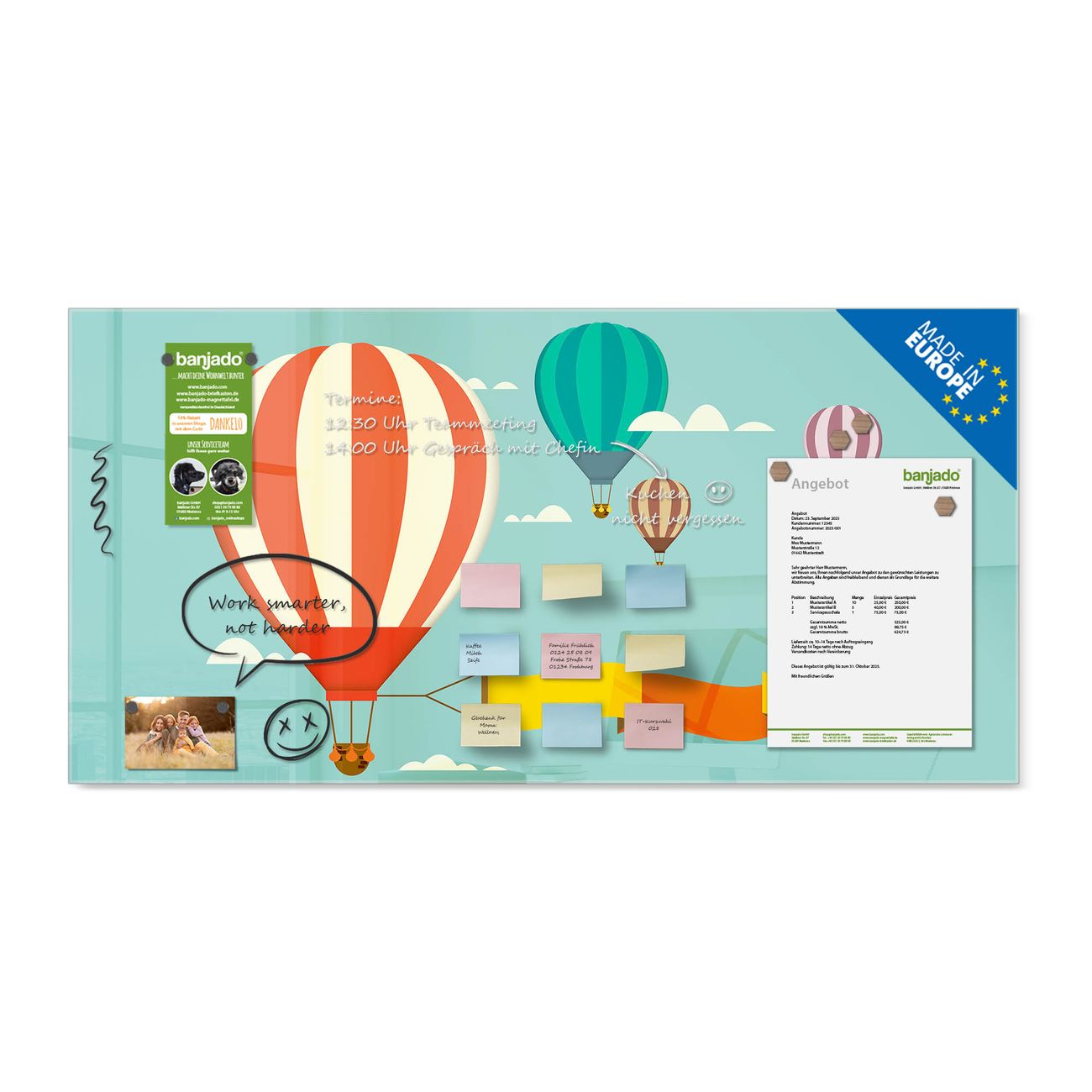 Glas Magnettafel im Querformat Motiv Vier Ballons