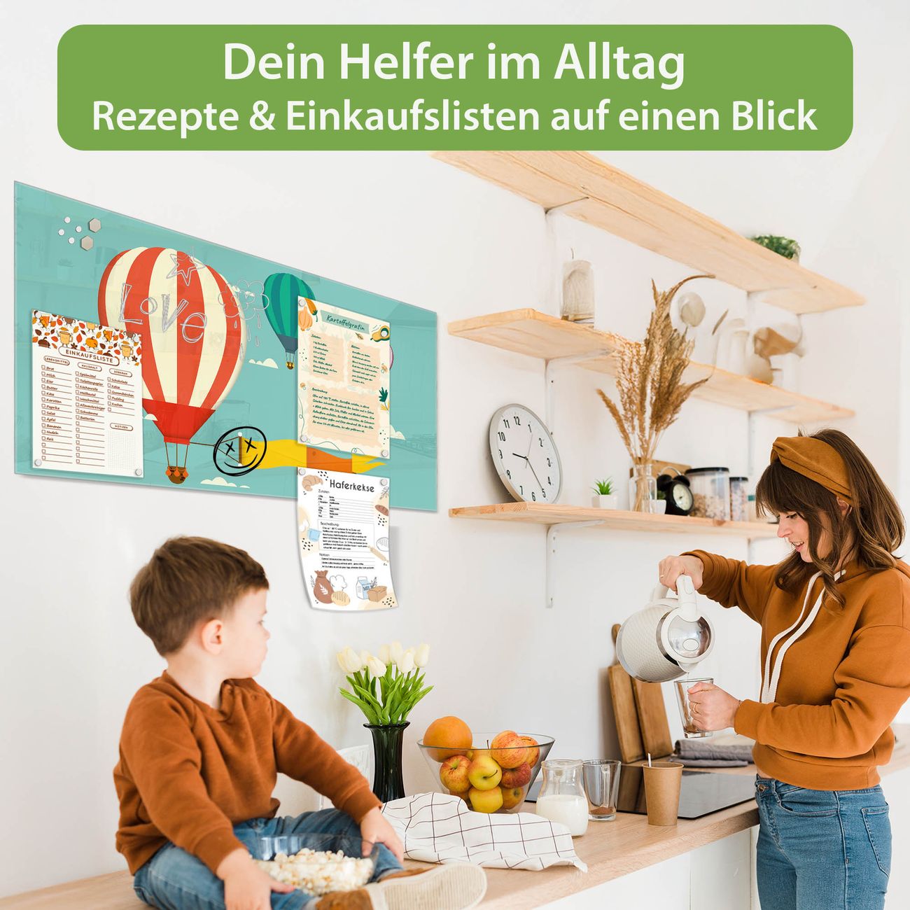 Ein Stück Design, das Ihren Alltag organisiert. Schreiben, heften, inspirieren - alles an einem Ort. Qualität, die man spürt. Montage leicht gemacht. Handwerk mit Herz - veredelt in Sachsen. Einzigartiges Design mit Motiv Motiv Vier Ballons Beschreibbare Glasoberfläche, leicht zu reinigen Starke Magnetkraft durch Stahlrückwand Inklusive 4 Neodym-Magneten Flexible Montageoptionen Handveredelt in Sachsen - Qualität, die bleibt
