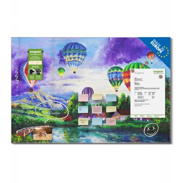 Material: 4mm Sicherheitsglas mit Metallrückwand Eigenschaften: beschreibbar, magnetisch, kratzfest Maße: 120x80x0,6cm, 14,40kg schwer Motiv Nummer 12067 Ballons In Lila Wolken Zubehör: inklusive 4 Neodym-Magnete