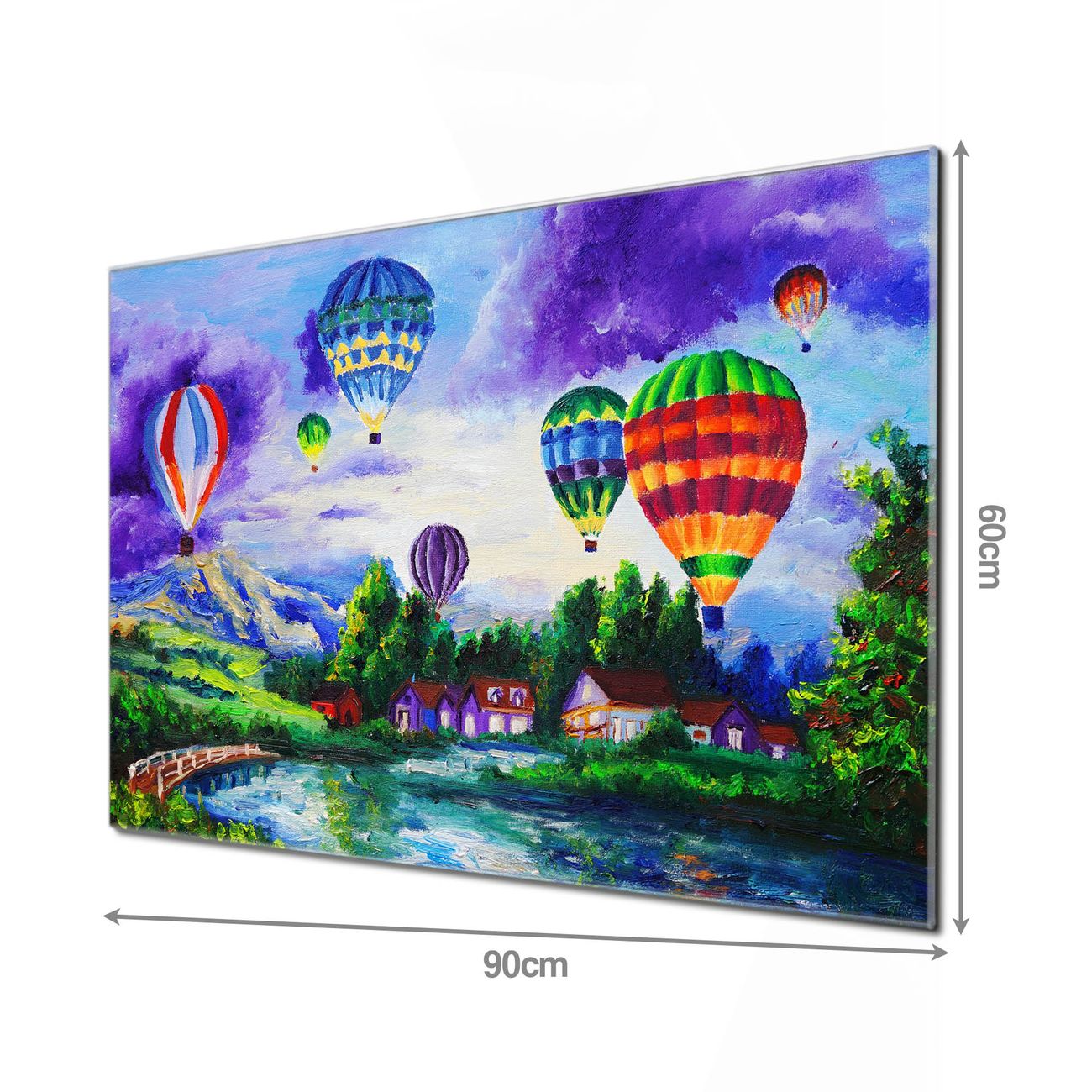 Material: 4mm Sicherheitsglas mit Metallrückwand Eigenschaften: beschreibbar, magnetisch, kratzfest Maße: 90x60x0,6cm, 8,10kg schwer Motiv Nummer 12067 Ballons In Lila Wolken Zubehör: inklusive 4 Neodym-Magnete