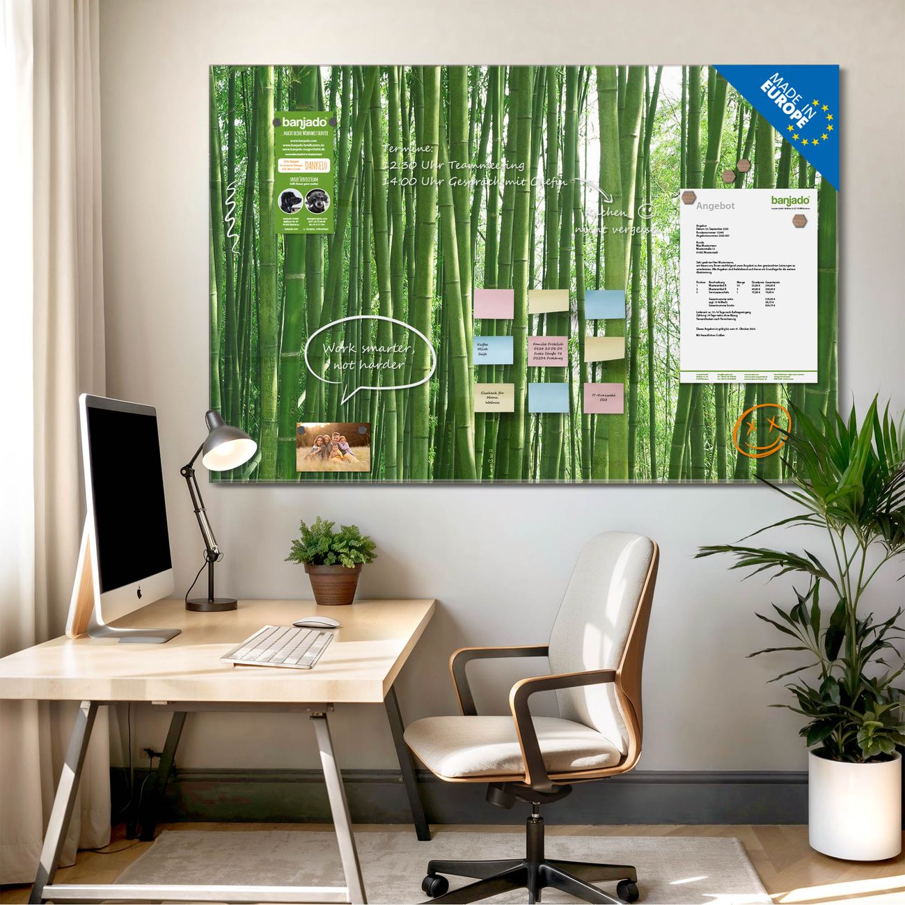 Jede Glas Magnettafel wird in unserer Werkstatt von Hand gefertigt und sorgfältig geprüft. So erhalten Sie ein echtes Qualitätsprodukt, das Funktion und Ästhetik perfekt vereint.?? Warum banjado?