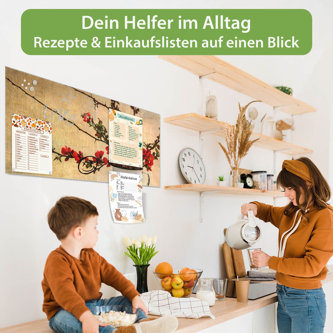 Ein Stück Design, das Ihren Alltag organisiert. Schreiben, heften, inspirieren - alles an einem Ort. Qualität, die man spürt. Montage leicht gemacht. Handwerk mit Herz - veredelt in Sachsen. Einzigartiges Design mit Motiv Motiv Berberitzen Beschreibbare Glasoberfläche, leicht zu reinigen Starke Magnetkraft durch Stahlrückwand Inklusive 4 Neodym-Magneten Flexible Montageoptionen Handveredelt in Sachsen - Qualität, die bleibt
