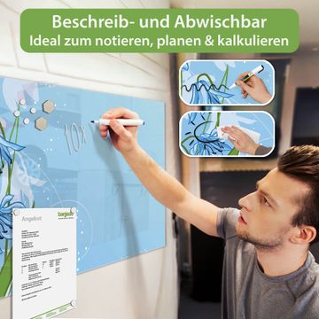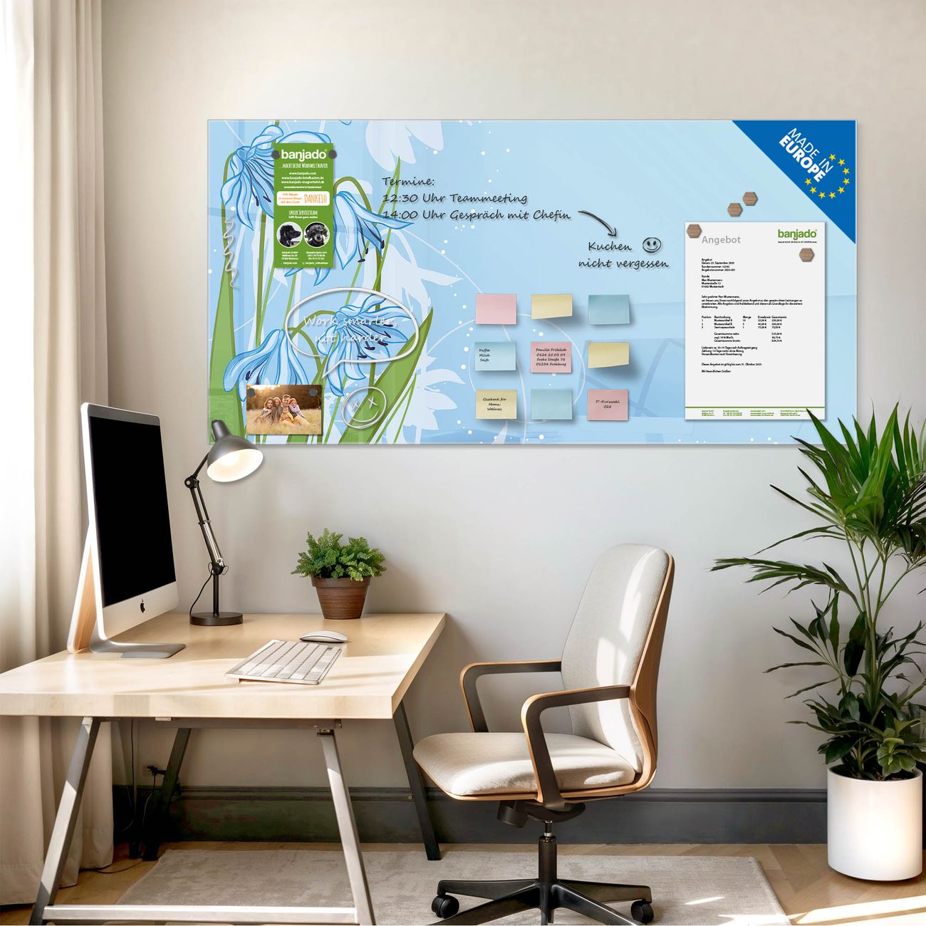 Die banjado Glas Magnettafel mit dem Motiv Motiv Bergblaulilie verbindet Funktionalität mit Stil. Sie ersetzt das Zettelchaos durch klare Strukturen und bringt dabei eine warme, natürliche Atmosphäre in Ihr Zuhause. Ob im Büro, in der Küche oder im Eingangsbereich - dieses Design-Board zieht Blicke an und sorgt für Ordnung mit Charakter.