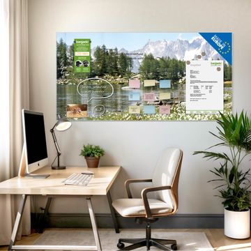 Die banjado Glas Magnettafel mit dem Motiv Motiv Bergidylle verbindet Funktionalität mit Stil. Sie ersetzt das Zettelchaos durch klare Strukturen und bringt dabei eine warme, natürliche Atmosphäre in Ihr Zuhause. Ob im Büro, in der Küche oder im Eingangsbereich - dieses Design-Board zieht Blicke an und sorgt für Ordnung mit Charakter.