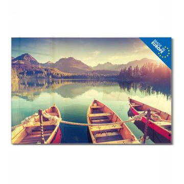 Glas Magnettafel im Querformat Motiv Drei Boote Am Steg