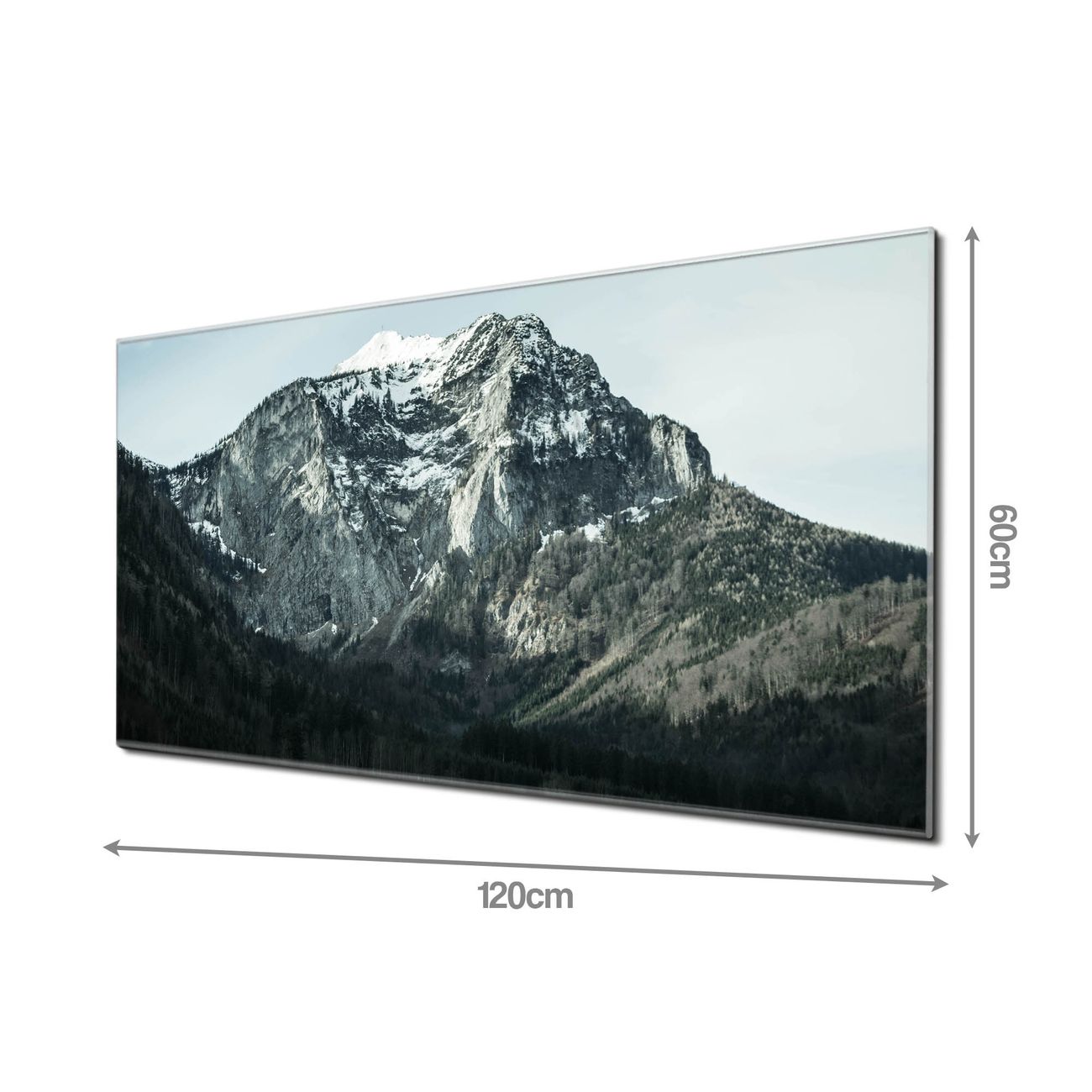 Material: 4mm Sicherheitsglas mit Metallrückwand Eigenschaften: beschreibbar, magnetisch, kratzfest Maße: 120x60x0,6cm, 10,80kg schwer Motiv Nummer 11831 Im Schatten des Bergs Zubehör: inklusive 4 Neodym-Magnete