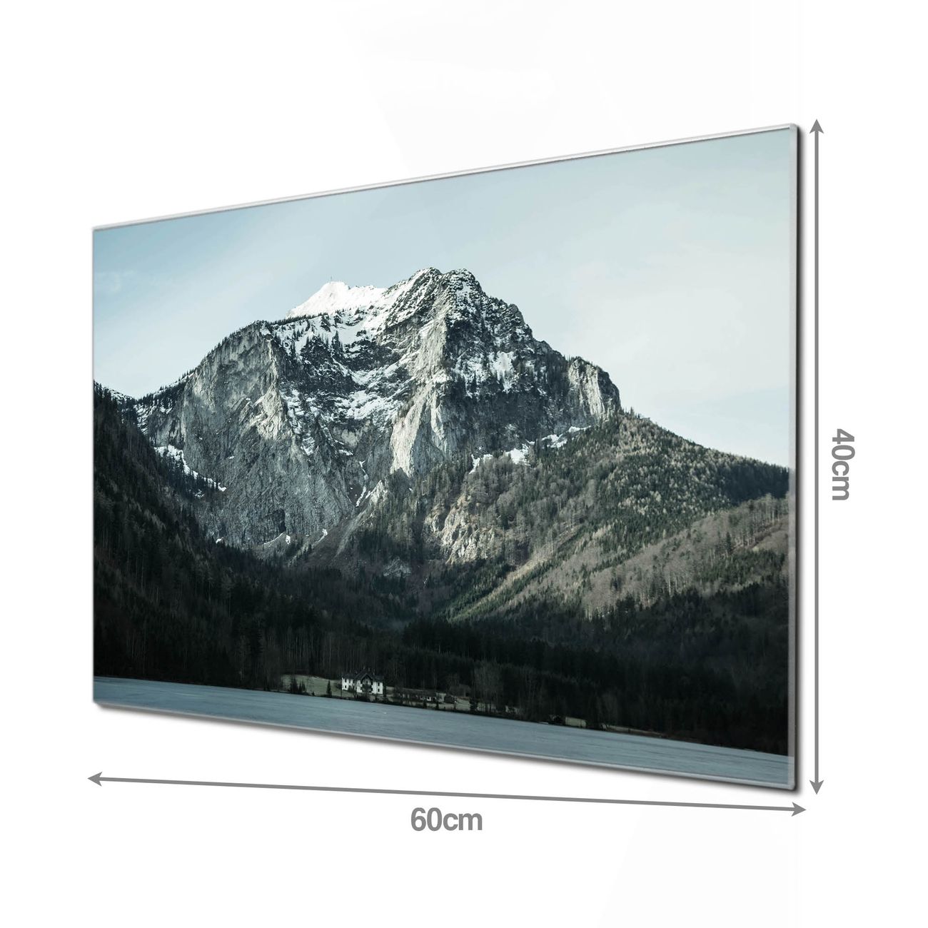 Material  4mm Sicherheitsglas mit Metallrückwand Eigenschaften  beschreibbar, magnetisch, kratzfest Maße  60x40x0,6cm, 3,6kg schwer Motiv  Nummer 11831 Im Schatten des Bergs Zubehör  inklusive 4 Neodym-Magnete