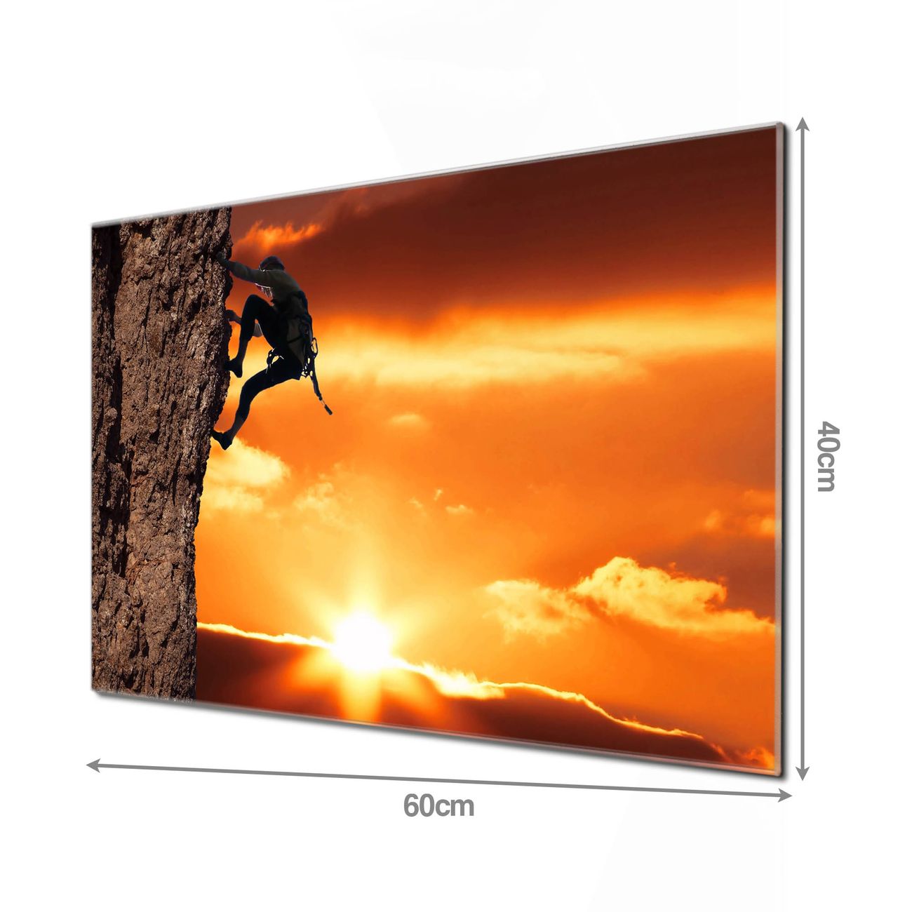 Material  4mm Sicherheitsglas mit Metallrückwand Eigenschaften  beschreibbar, magnetisch, kratzfest Maße  60x40x0,6cm, 3,6kg schwer Motiv  Nummer 10117 Bergsteiger Zubehör  inklusive 4 Neodym-Magnete