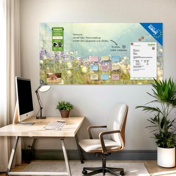 Die banjado Glas Magnettafel mit dem Motiv Motiv Bergwiese verbindet Funktionalität mit Stil. Sie ersetzt das Zettelchaos durch klare Strukturen und bringt dabei eine warme, natürliche Atmosphäre in Ihr Zuhause. Ob im Büro, in der Küche oder im Eingangsbereich - dieses Design-Board zieht Blicke an und sorgt für Ordnung mit Charakter.