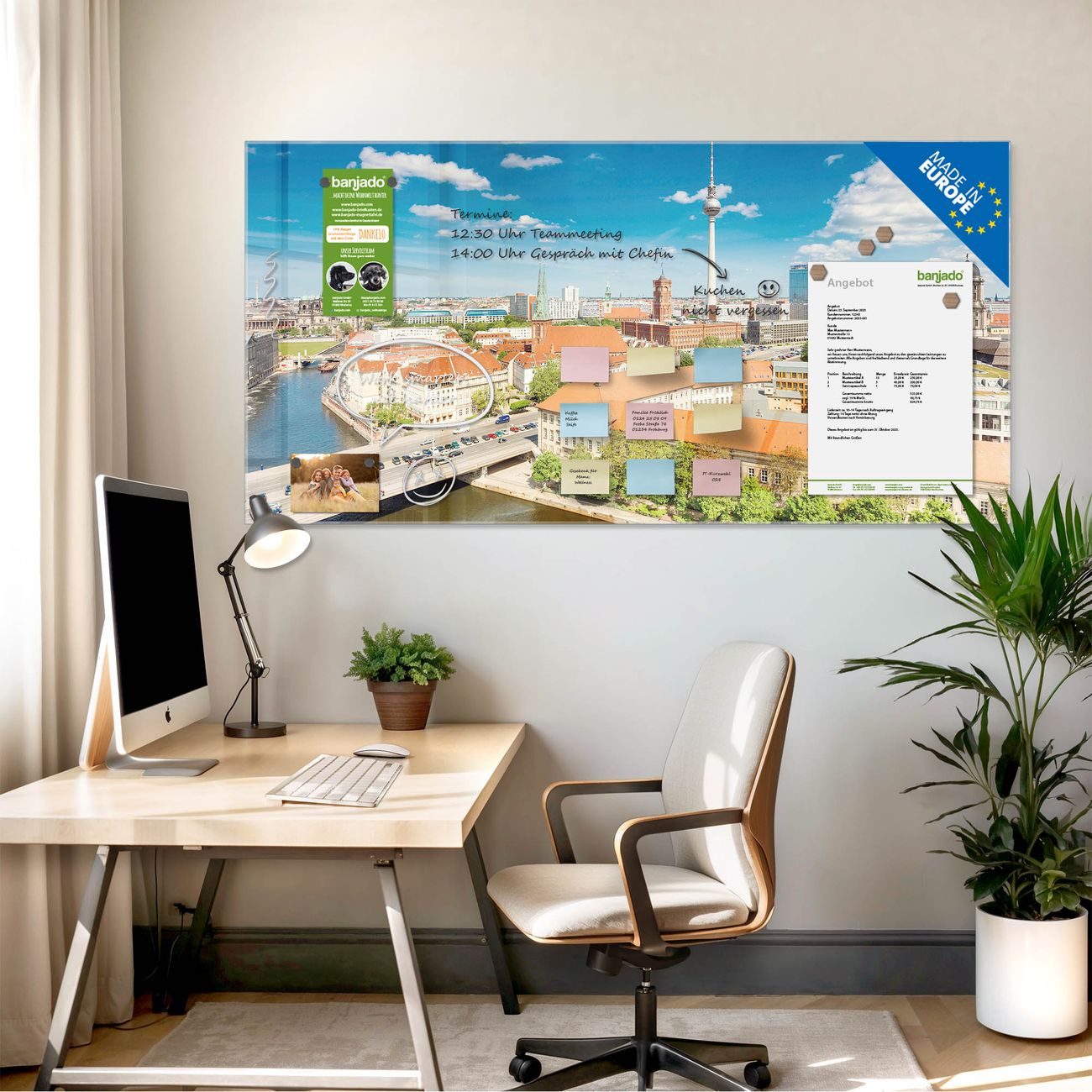 Die banjado Glas Magnettafel mit dem Motiv Motiv Berlin Mitte verbindet Funktionalität mit Stil. Sie ersetzt das Zettelchaos durch klare Strukturen und bringt dabei eine warme, natürliche Atmosphäre in Ihr Zuhause. Ob im Büro, in der Küche oder im Eingangsbereich - dieses Design-Board zieht Blicke an und sorgt für Ordnung mit Charakter.