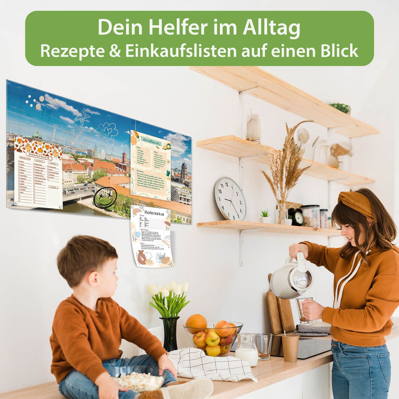 Ein Stück Design, das Ihren Alltag organisiert. Schreiben, heften, inspirieren - alles an einem Ort. Qualität, die man spürt. Montage leicht gemacht. Handwerk mit Herz - veredelt in Sachsen. Einzigartiges Design mit Motiv Motiv Berlin Mitte Beschreibbare Glasoberfläche, leicht zu reinigen Starke Magnetkraft durch Stahlrückwand Inklusive 4 Neodym-Magneten Flexible Montageoptionen Handveredelt in Sachsen - Qualität, die bleibt