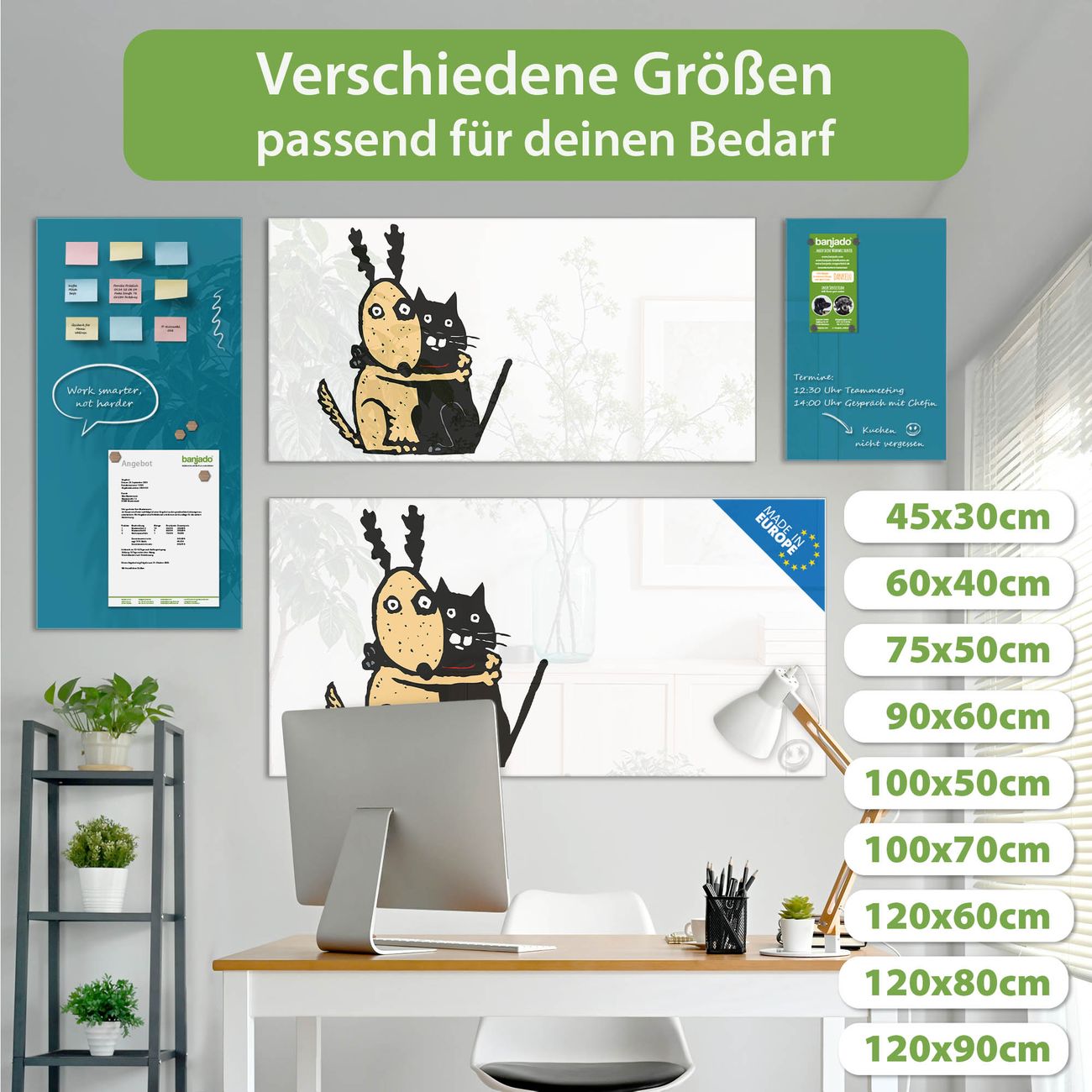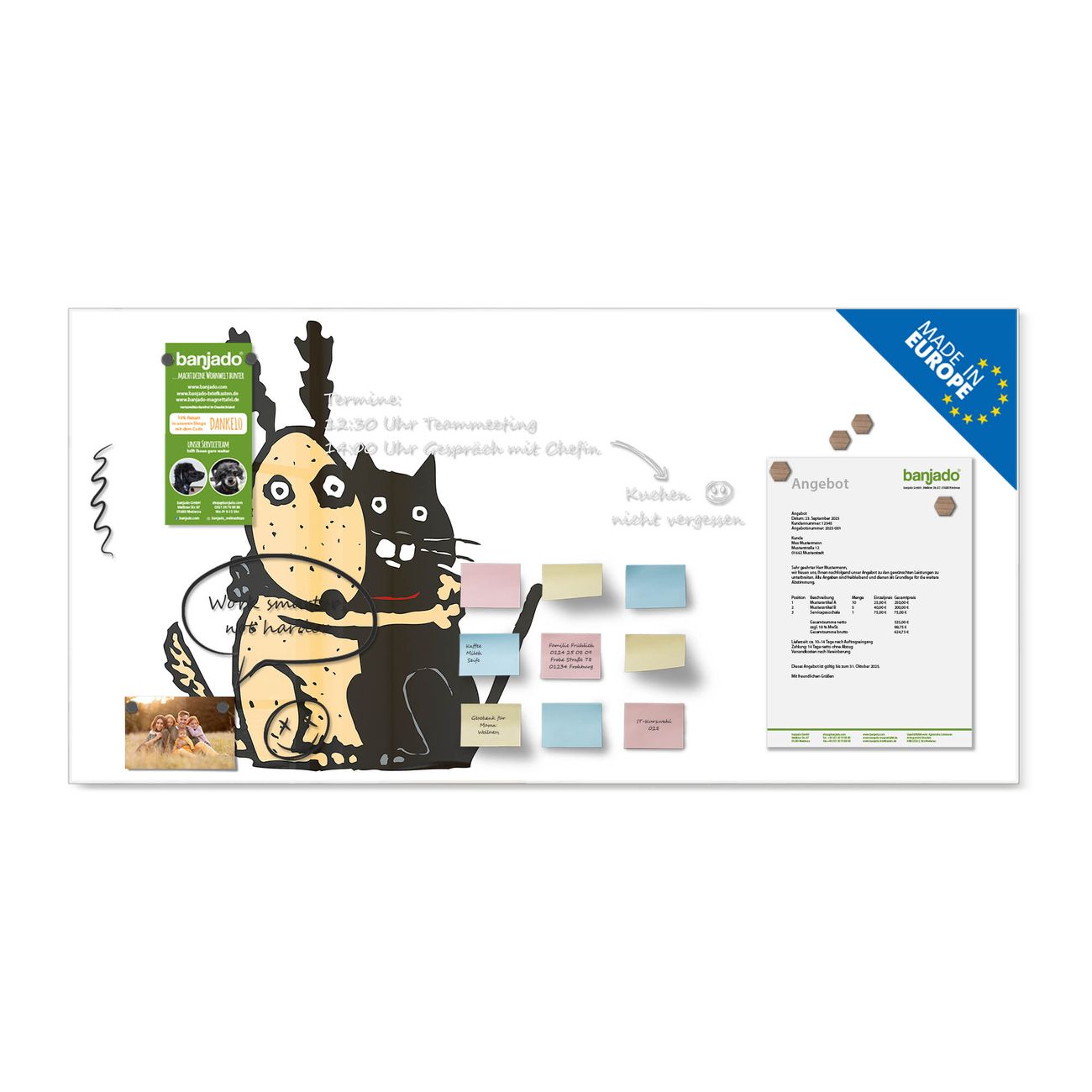Material: 4mm Sicherheitsglas mit Metallrückwand Eigenschaften: beschreibbar, magnetisch, kratzfest Maße: 100x50x0,6cm, 7,50kg schwer Motiv Nummer 11120 Beste Freunde Immer Zubehör: inklusive 4 Neodym-Magnete