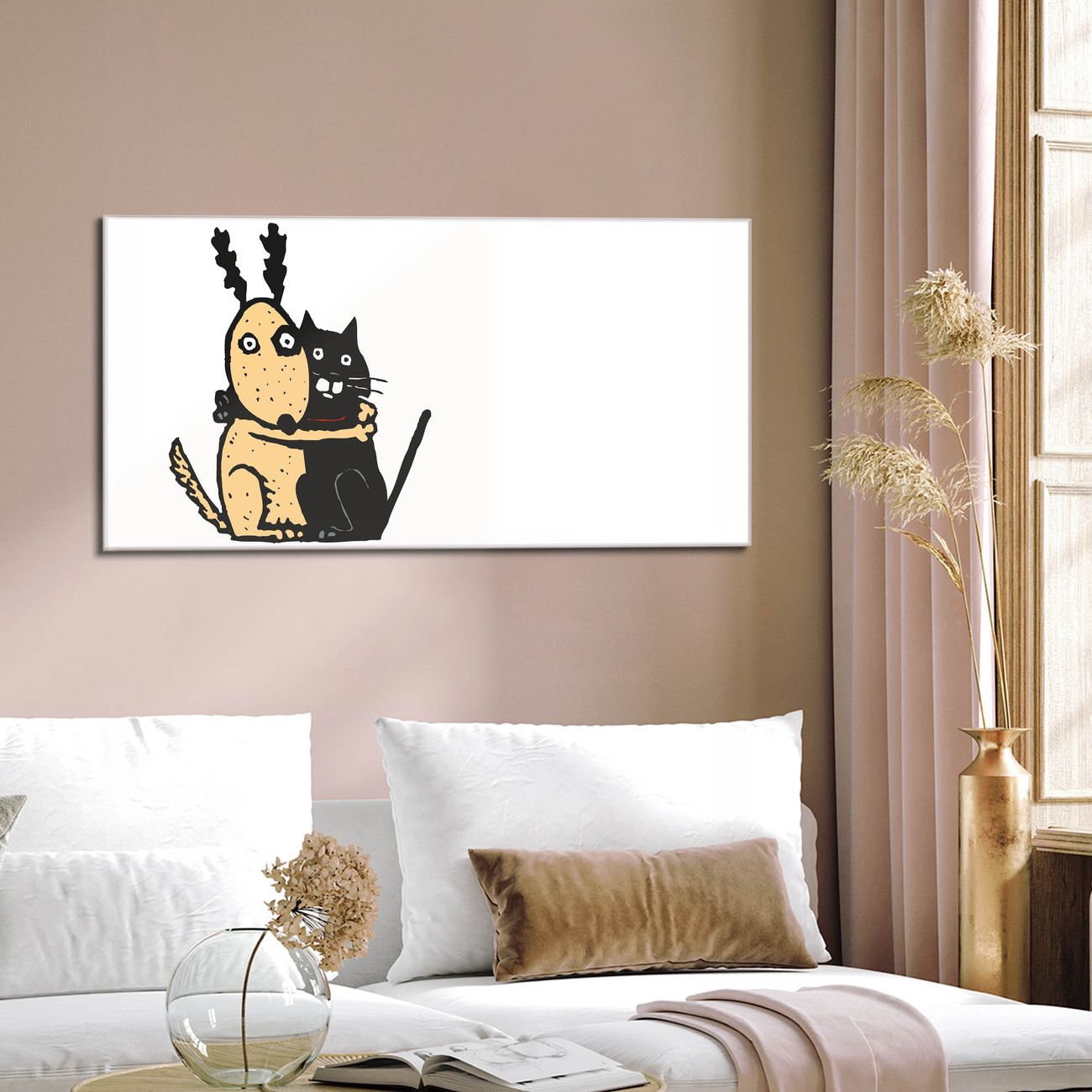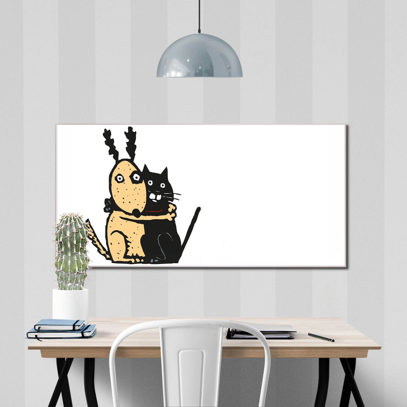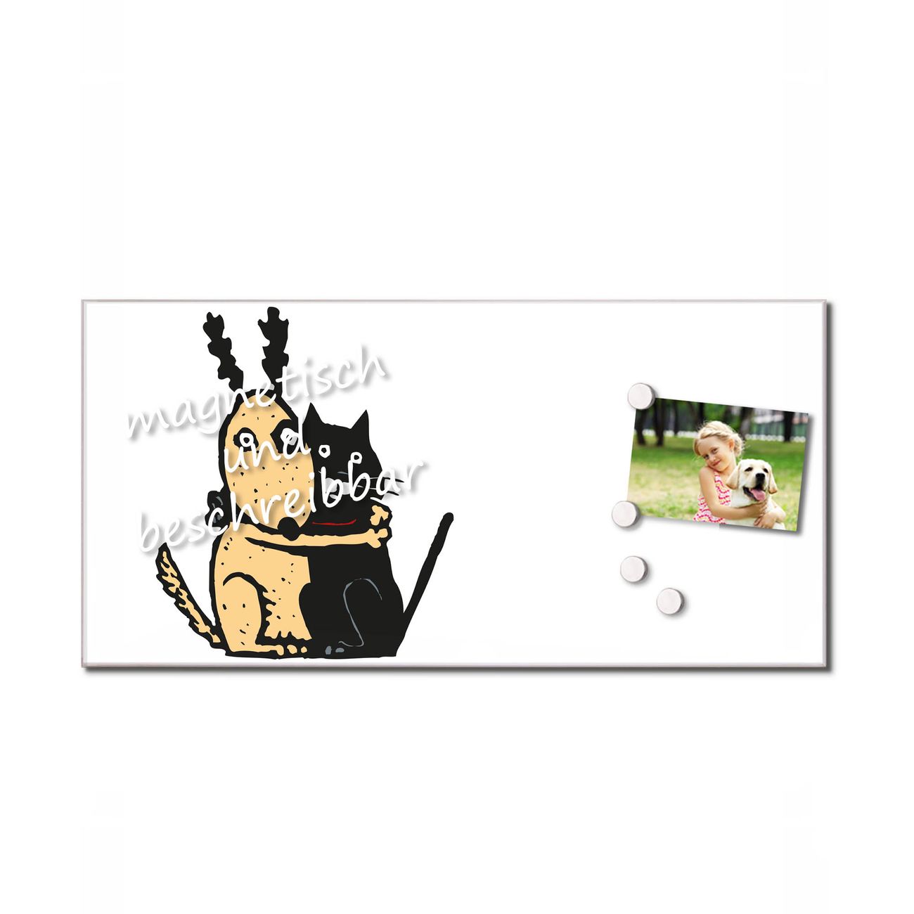 Material: 4mm Sicherheitsglas mit Metallrückwand Eigenschaften: beschreibbar, magnetisch, kratzfest Maße: 120x60x0,6cm, 10,80kg schwer Motiv Nummer 11120 Beste Freunde Immer Zubehör: inklusive 4 Neodym-Magnete