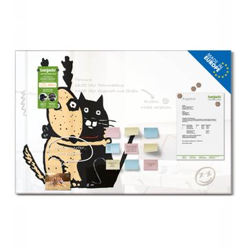 Material: 4mm Sicherheitsglas mit Metallrückwand Eigenschaften: beschreibbar, magnetisch, kratzfest Maße: 120x80x0,6cm, 14,40kg schwer Motiv Nummer 11120 Beste Freunde Immer Zubehör: inklusive 4 Neodym-Magnete