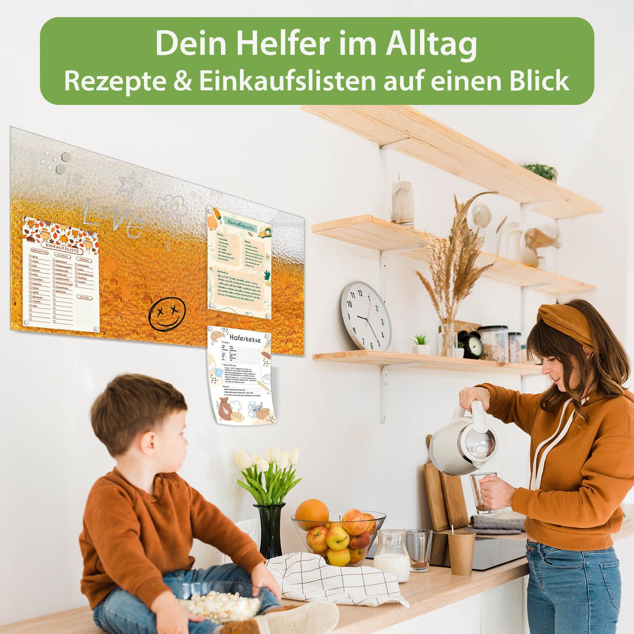 Auf der glatten Glasoberfläche lassen sich Termine, Rezepte oder Notizen ganz einfach mit Kreidestiften festhalten und rückstandslos entfernen. Starke Neodym-Magnete halten Ihre wichtigsten Erinnerungen sicher an Ort und Stelle. So entsteht Ihre ganz persönliche Ideenwand - jeden Tag neu.